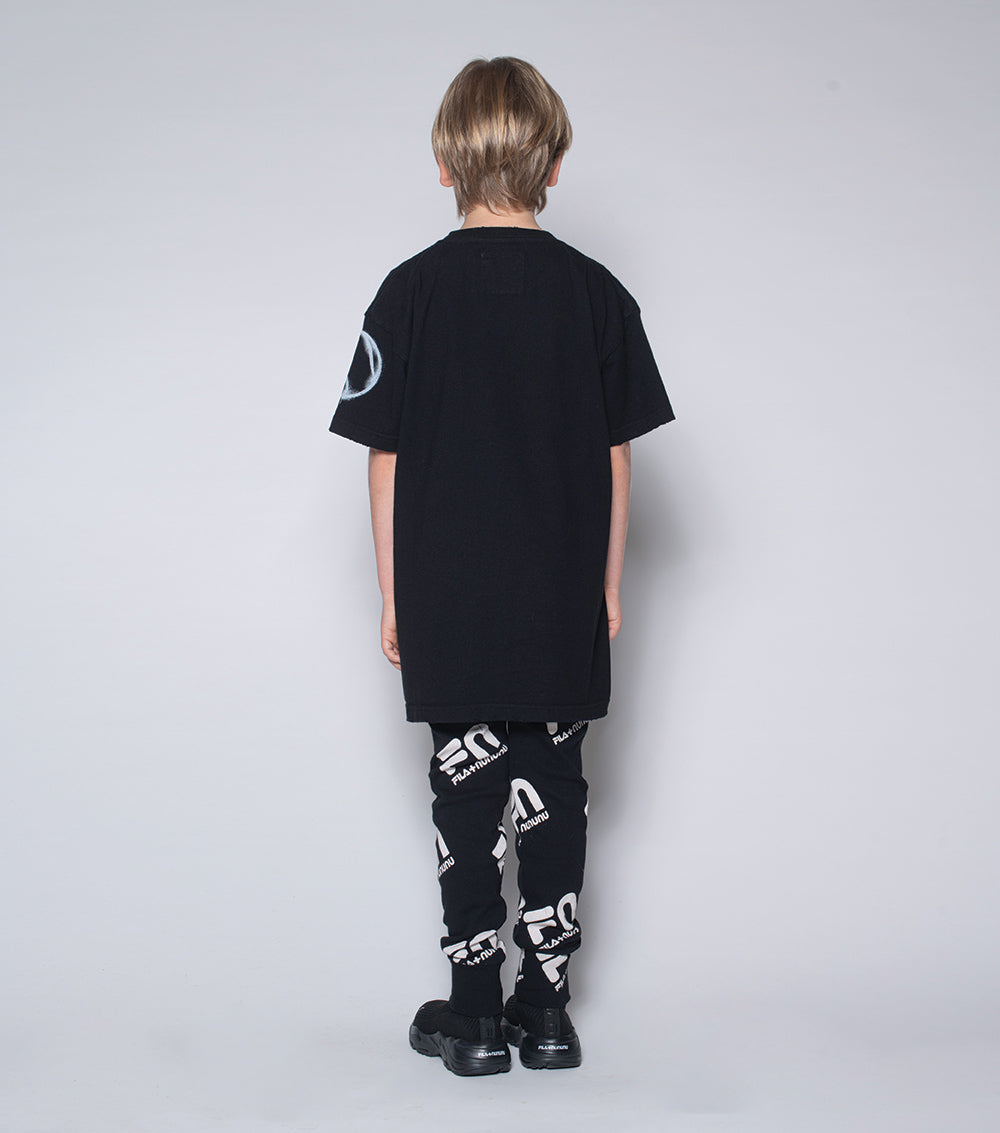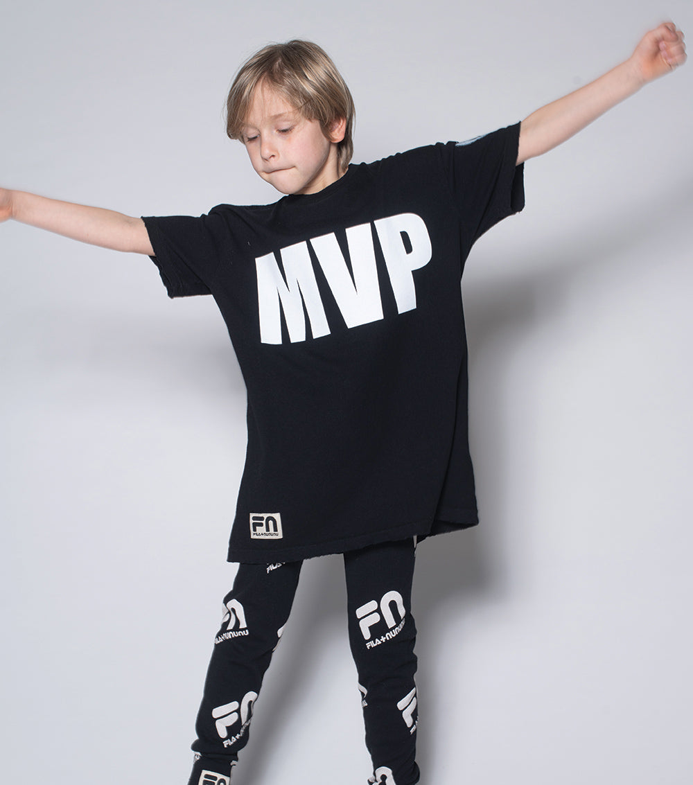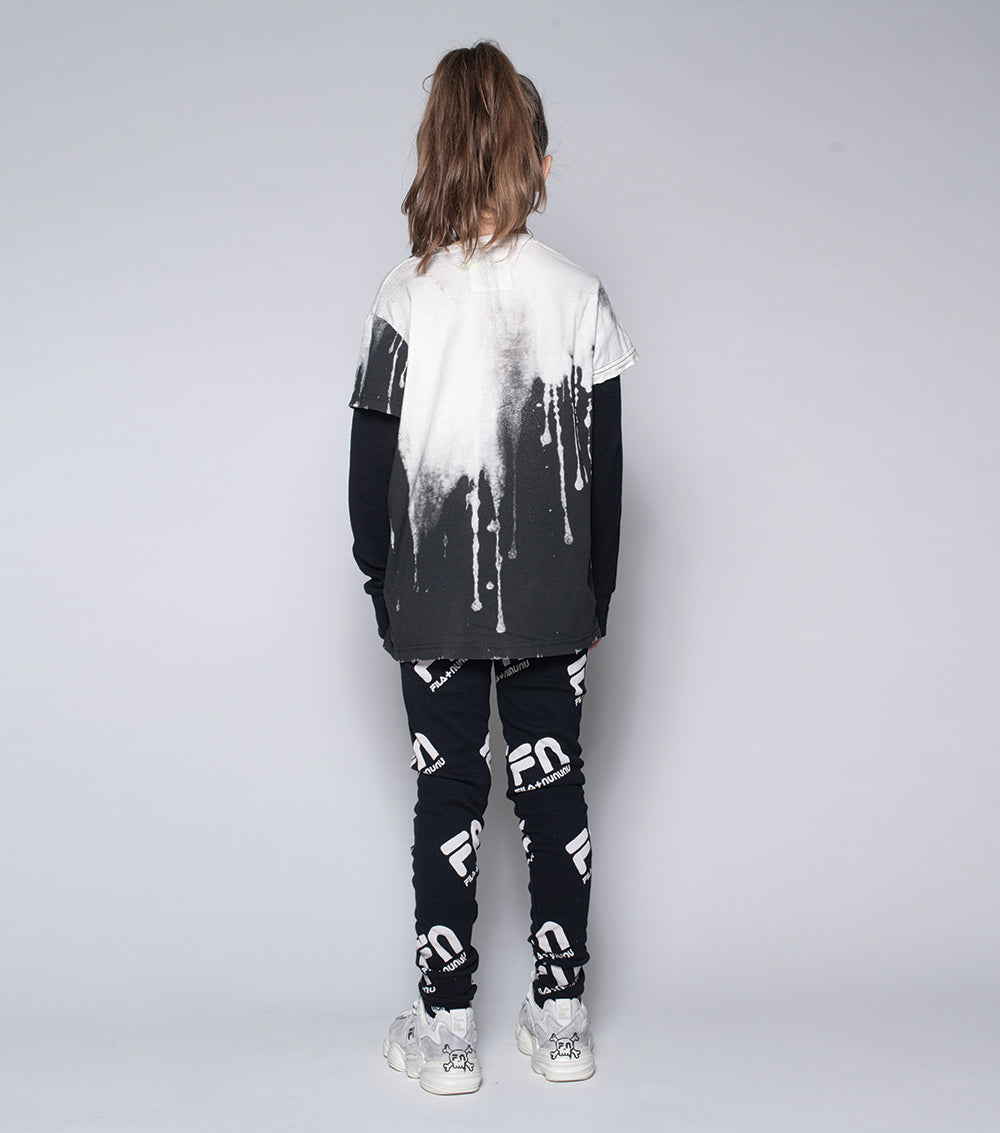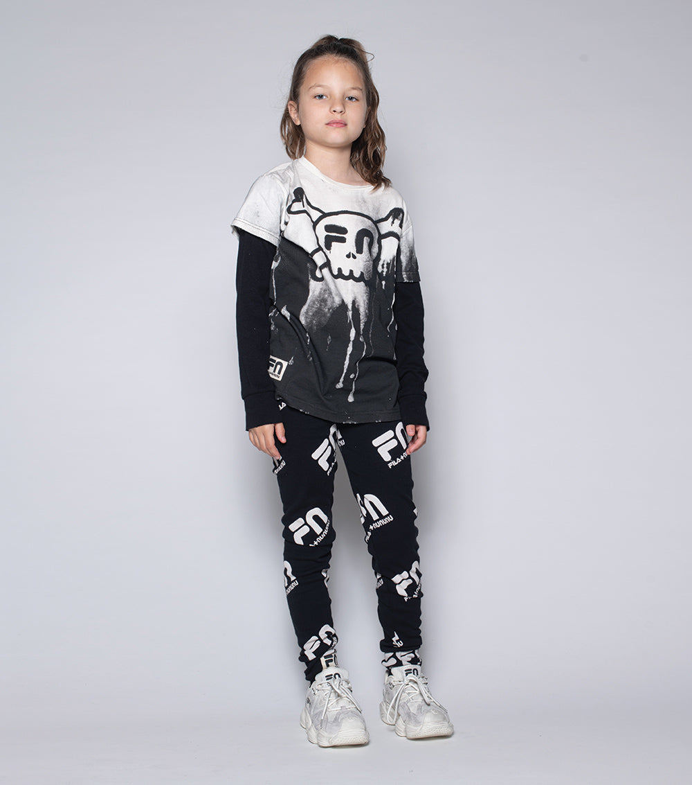 the FILA+nununu mashup logo dances all over this classic nununu item, our classic black leggings for boys & girls. a product of our collabo with the coolest sportswear brand we know, they’re a good look for any day of the week, with tees, hoodies & dresses layered on top. super-soft nununu cotton makes it easy for boys & girls to play, run, and take over the world. the tag is on the outside near the cuff because we don't feel like we need to do things like everyone else & hey, the kids agree.