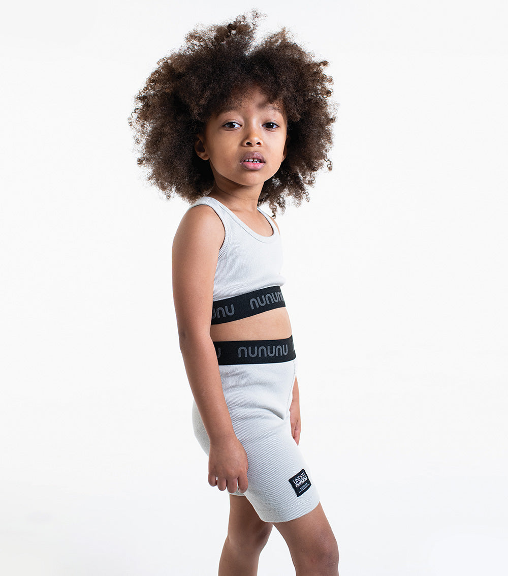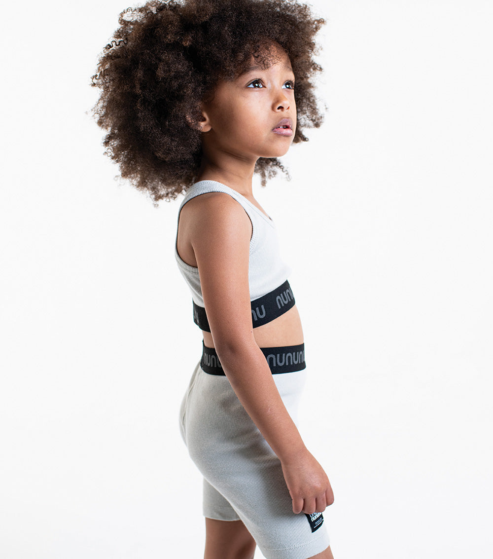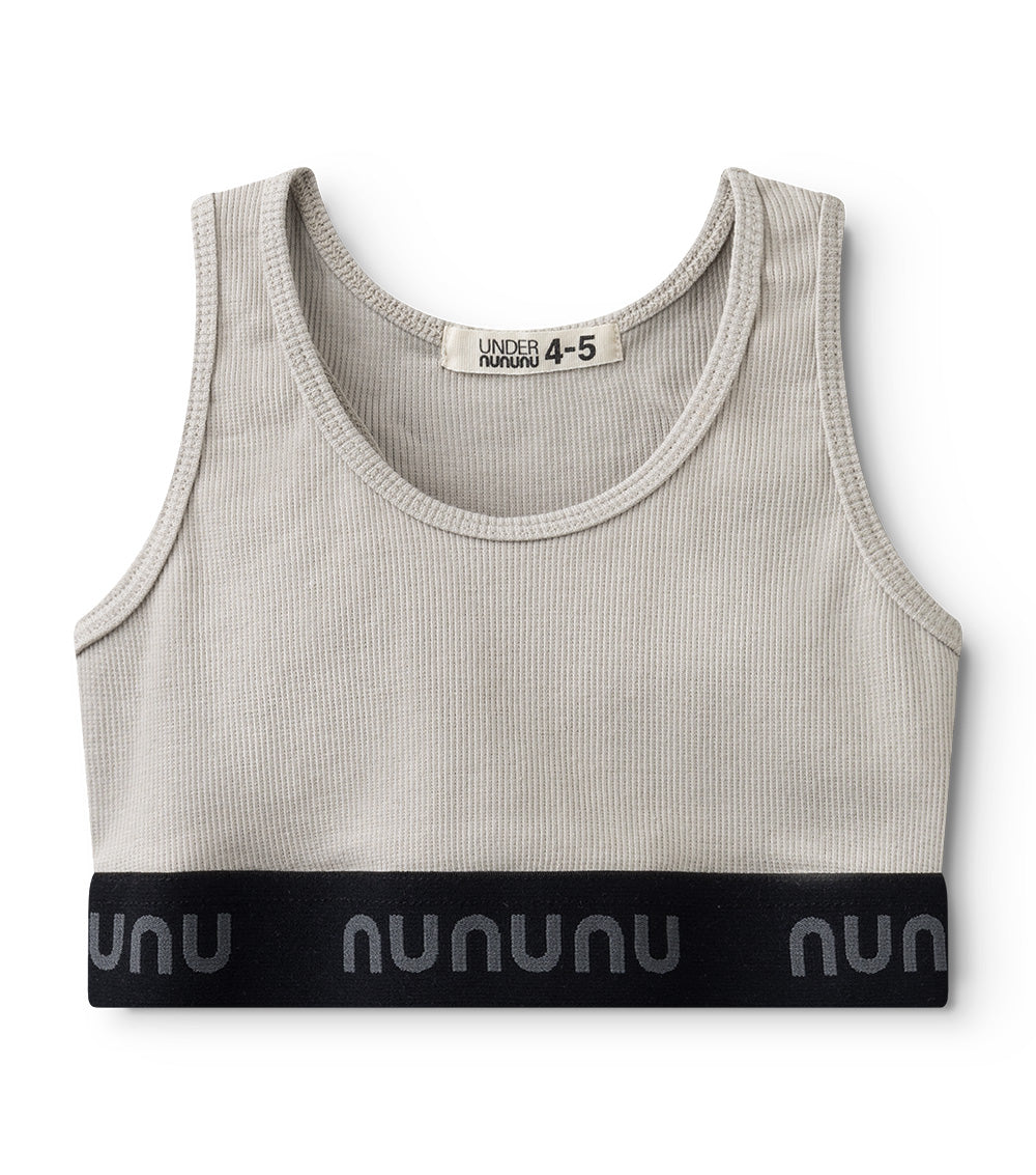 the ultimate under-layer comes in the form of the perfect half-undershirt. made of cozy, stone-colored cotton with a ribbed texture, it’s got the ideal classic racerback cut, with a higher neck & clean edges. our logo elastic band finishes this bomb piece, which works as an underneath basic, or as a top unto itself. try matching briefs or leggings for the full effect.