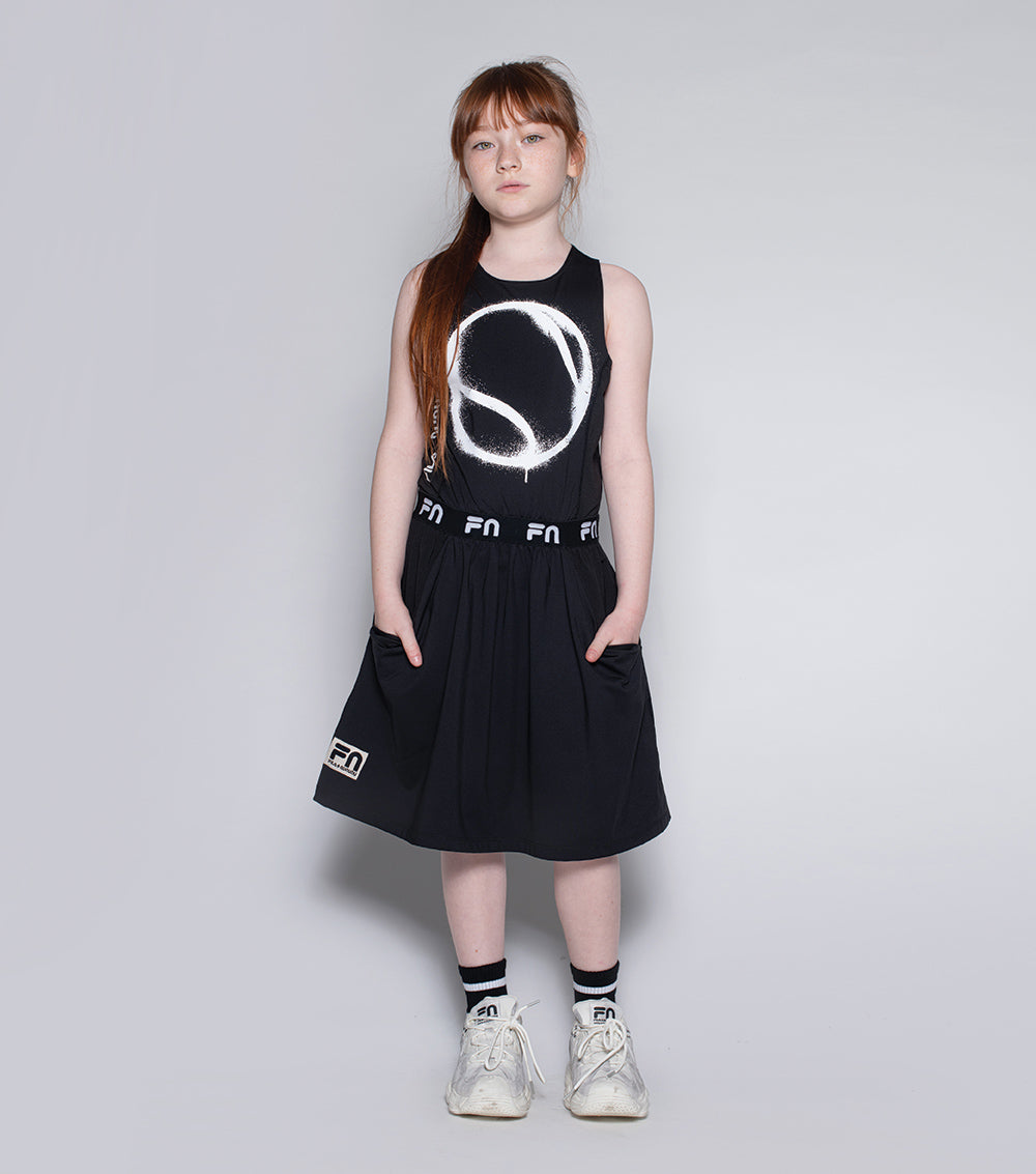 here’s a jam for all the aspiring Serena Williamses, or basically any kid who wants that ultra tennis-court swag FILA is known for. part of our collabo with the classic sportswear brand, this black number is made from a shiny, slinky-sporty material with a no-frills cut. the racer back tank top has our mashup logo blown up beyond the boundaries. same with our sprayed tennis ball motif on the front, an homage to Fila’s heritage & our urban obsession. an elastic logo waistband completes the look with two deep pockets ready to be filled with tennis balls set for a match. Or not.