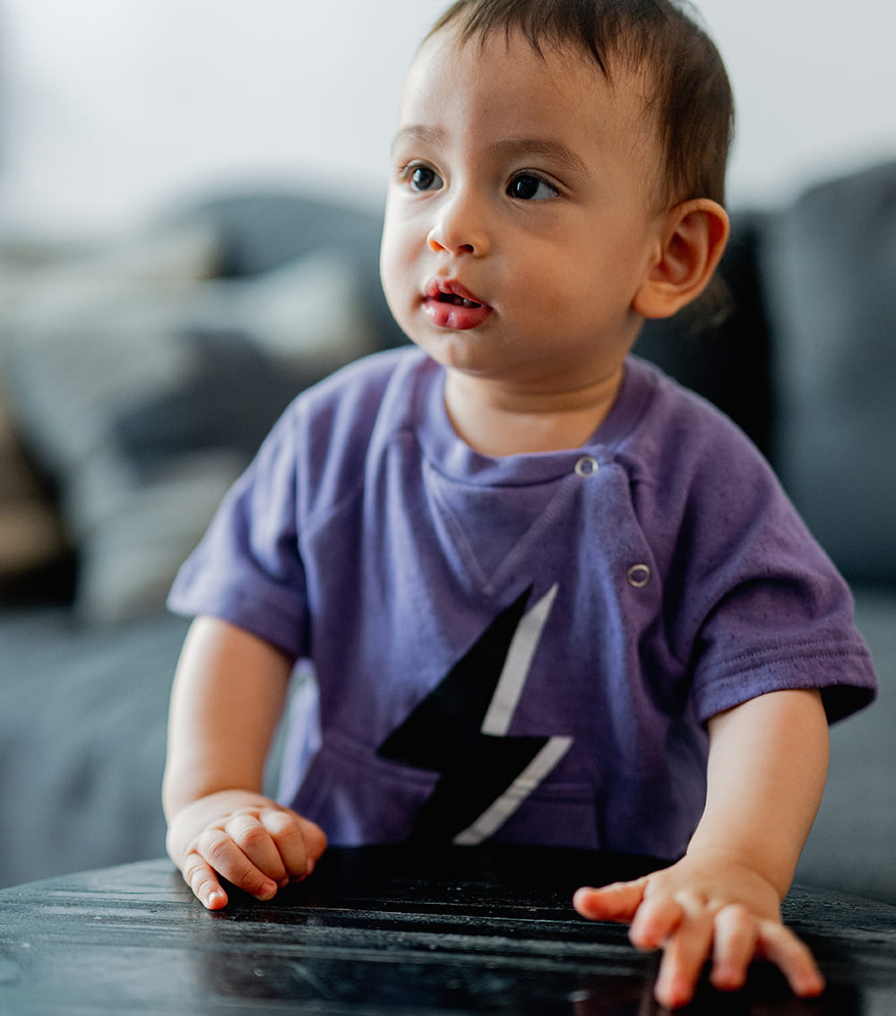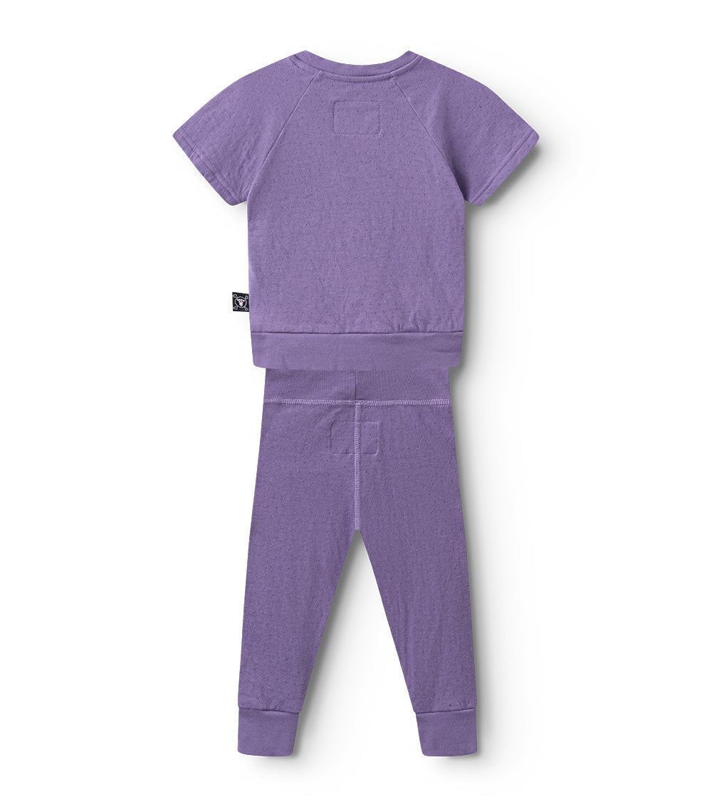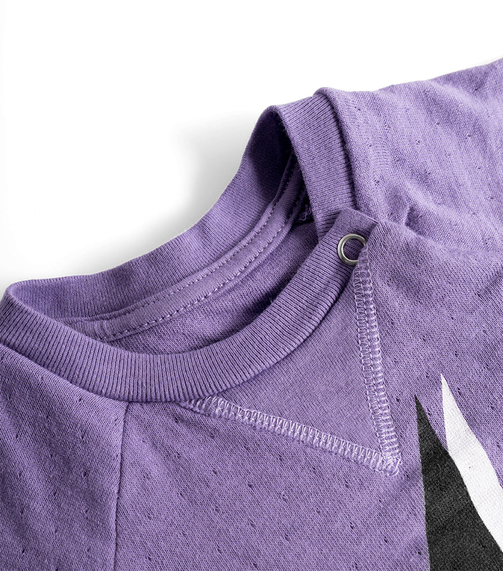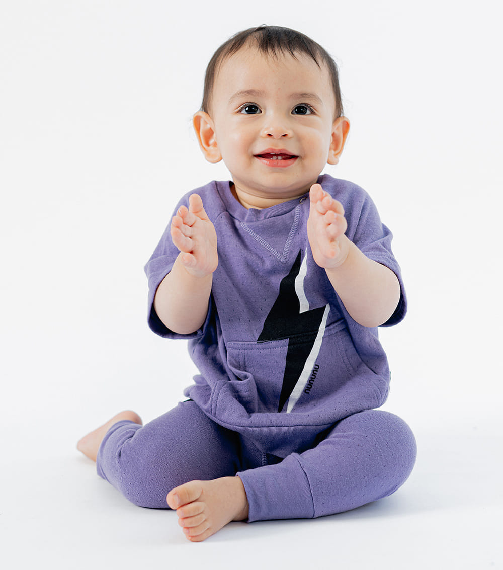 the baby wearing this fit may still be learning to walk but they’re always ready to bolt. that’s why we represented this trait on the front of this unisex short sleeve sweatshirt style top & matching leggings. they’re made of super soft double single cotton with wide cuffs on the bottoms for comfort. the top keeps it real with the triangle stitching detail & a big old kangaroo pocket for holding teethers & rattles. the black & white overlapping lightning bolts with the nununu logo up the side are there because this baby is double the power & double the trouble too.
