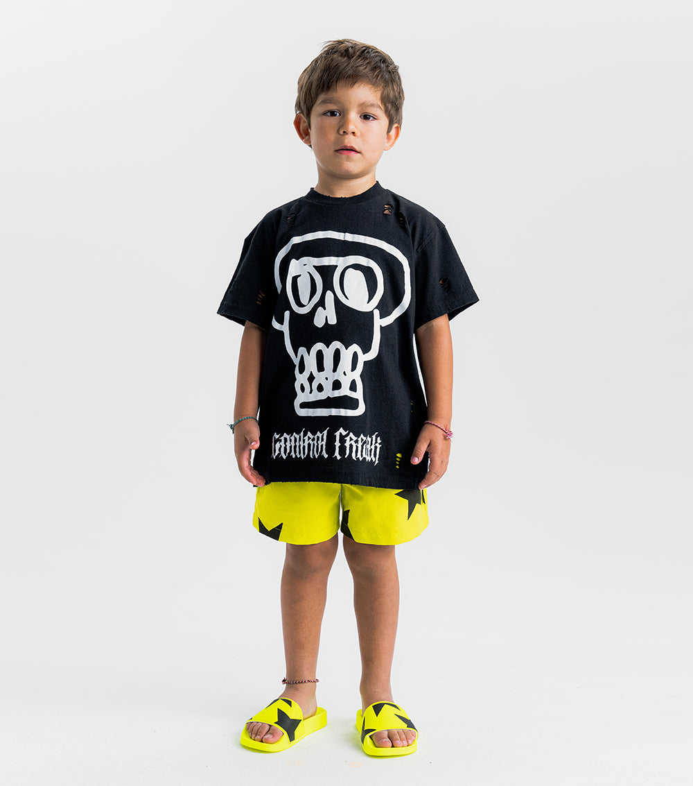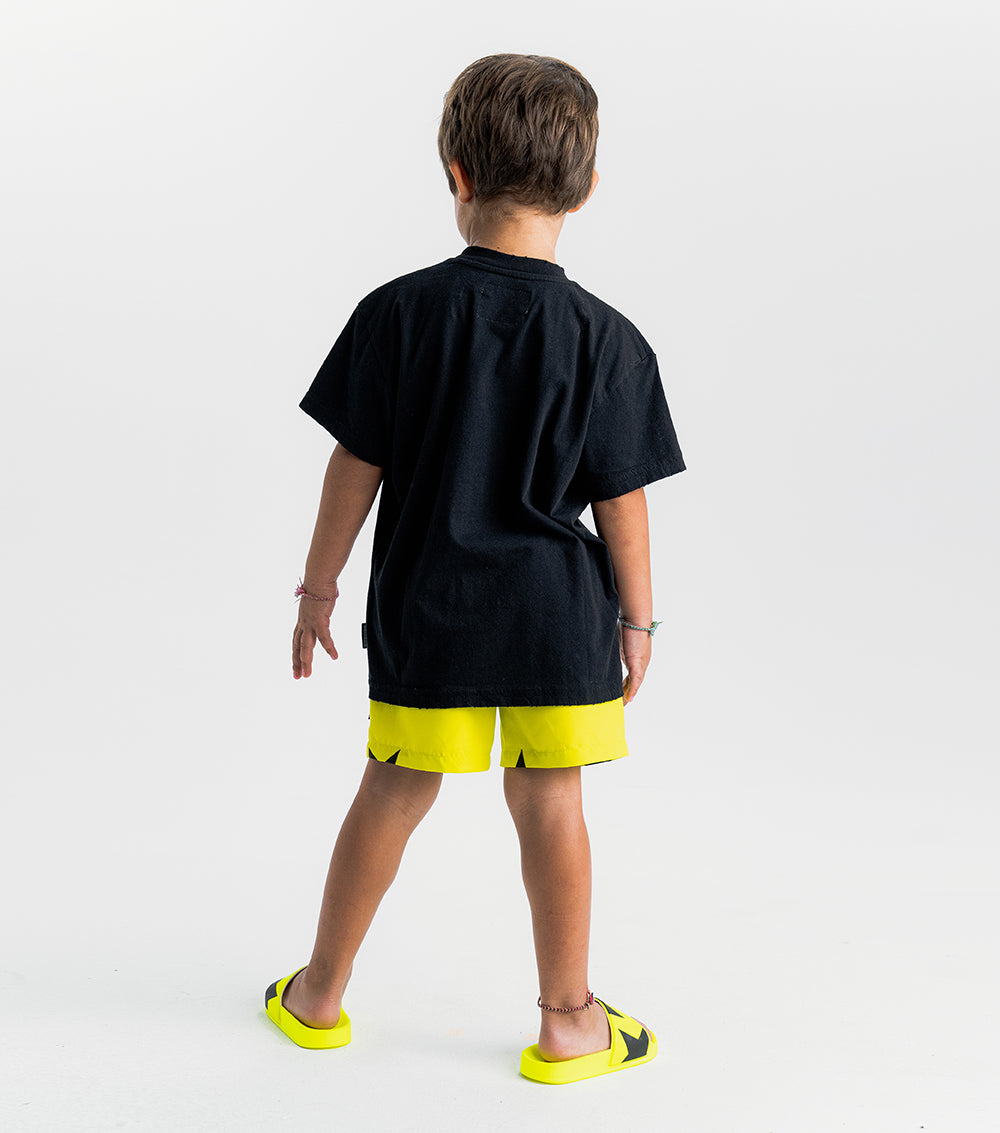 these hot lime trunks are giving future surf team captain vibes — serving up looks like they’ll be surfing up waves. that’s why we have our signature stars in black all over them. to remind everyone watching who the all-star is. the waistband is black along with a drawstring that keeps them on. all beach day long.