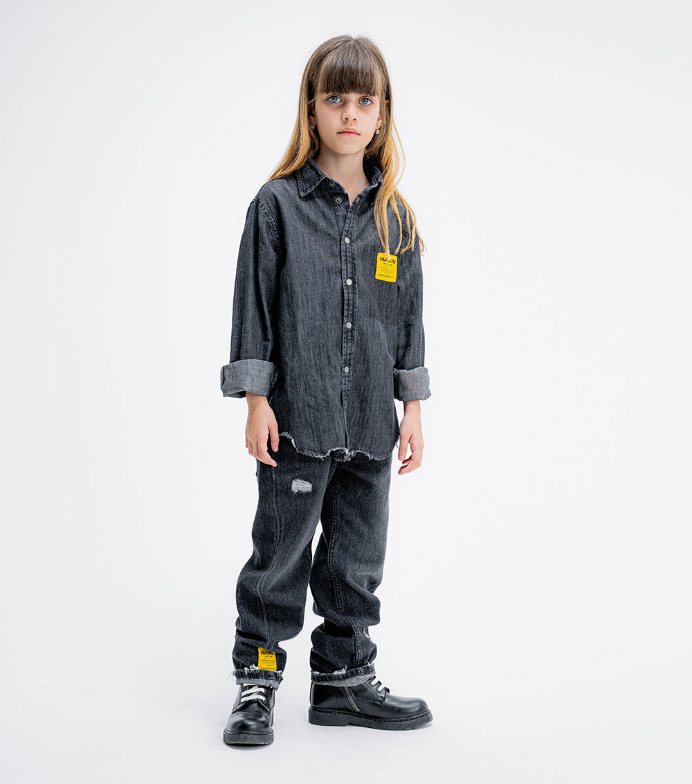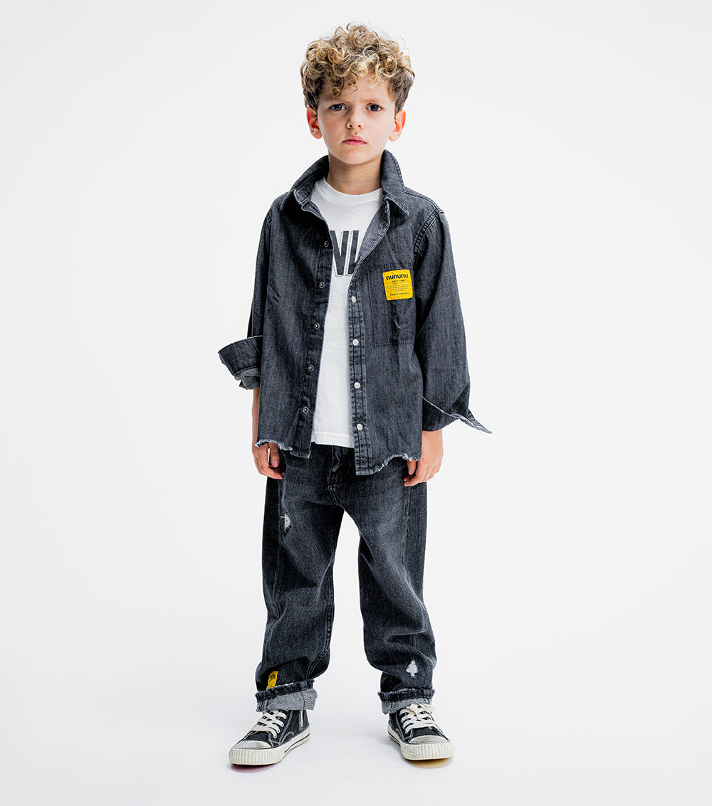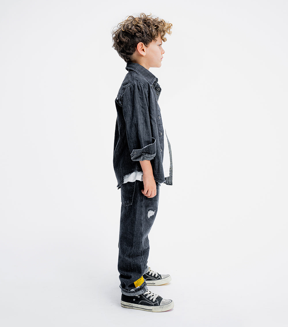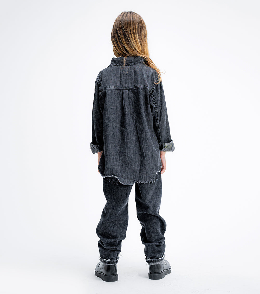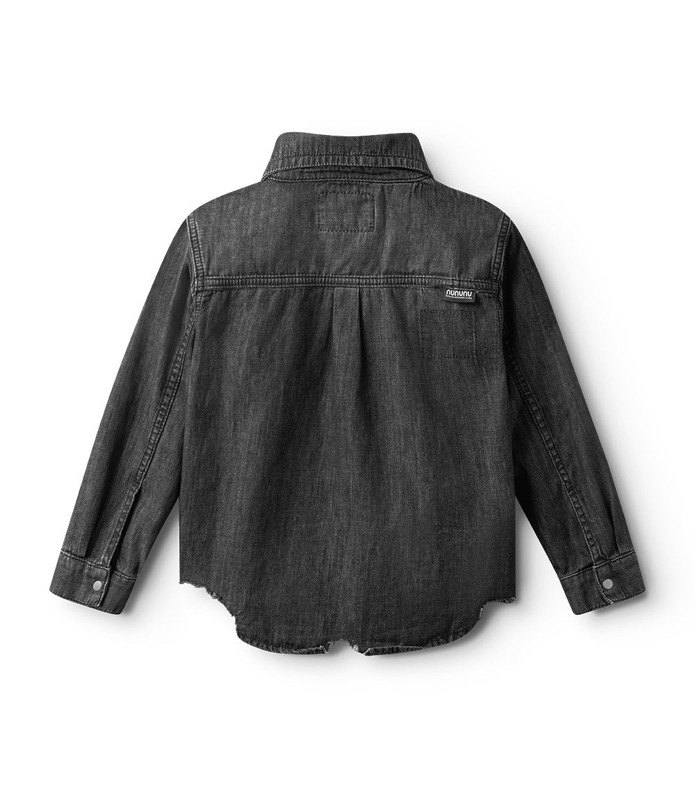 at some point, it's all about basics, and what's more basic than the perfect washed black denim shirt? perfect for layering, amazing to throw on well, anything. the right denim shirt – is a must have year-round! we're especially in love with this gender-neutral light denim shirt in the perfect kind of black. the fabric has total flexibility, the snap closures make it a cinch to wear and the details… like the darker square that imagined he was a pocket and our yellow care label that decided she needed to be upfront…
