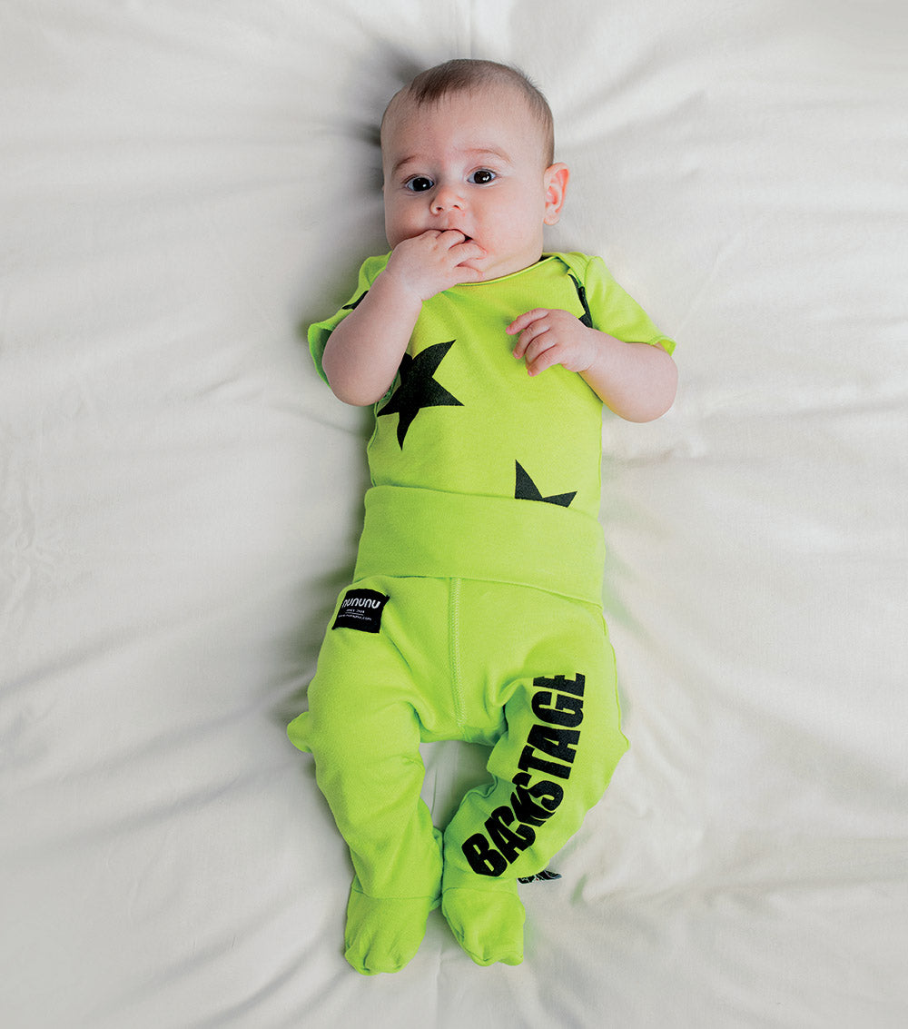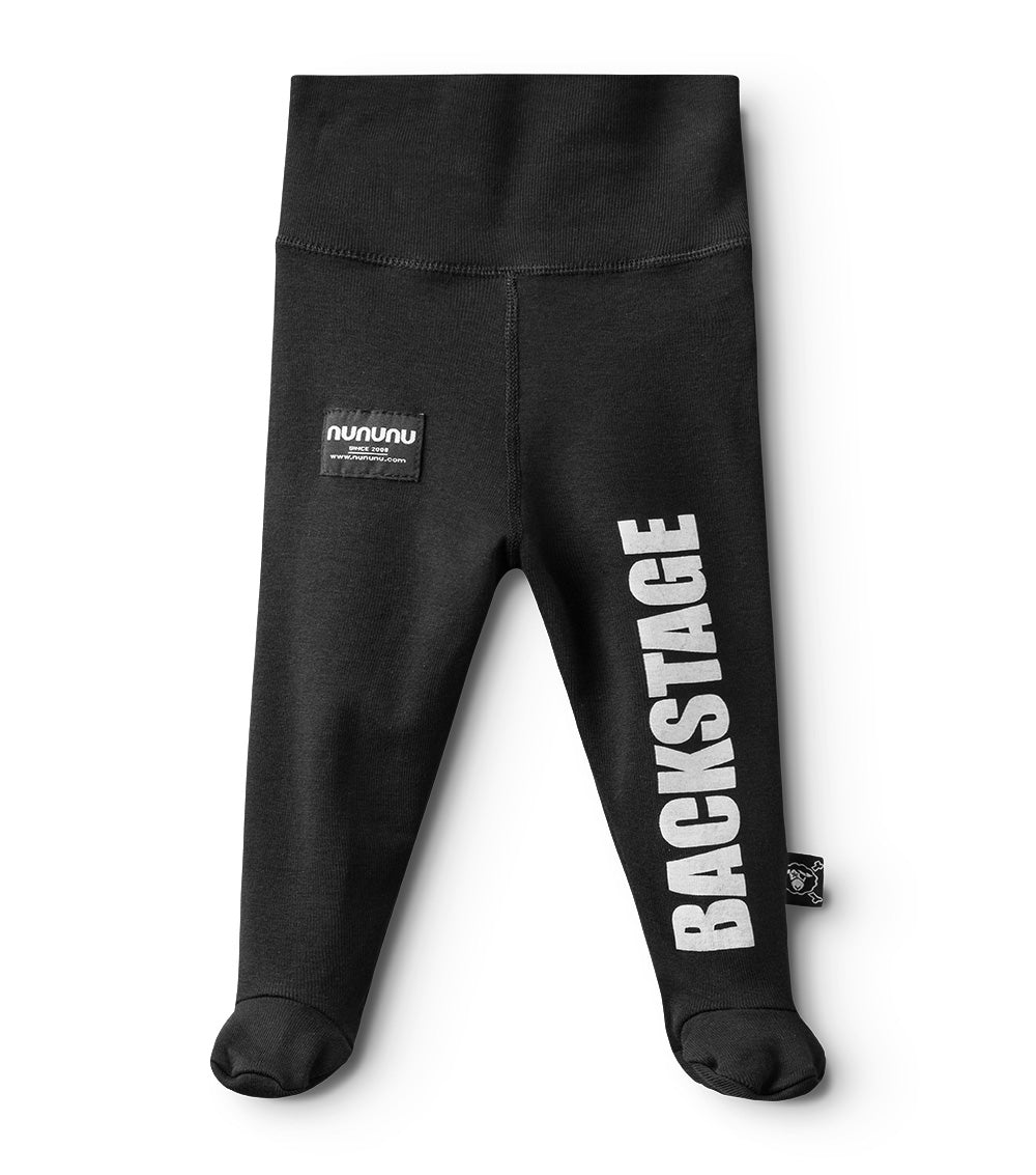our beloved leggings now come in baby form, with footies to keep those babies warm. so cozy & high on style, these black footed leggings have the word “backstage” in big block letters on one leg, because that’s where this mini rock star belongs. they don’t require shoes, so that’s one less thing. style ‘em with a onesie or matching nununu sweatshirt. luxurious, super soft fine rib cotton keeps the kid nice & cozy, like a constant hug, as they take in their strange new surroundings, blissfully unaware.