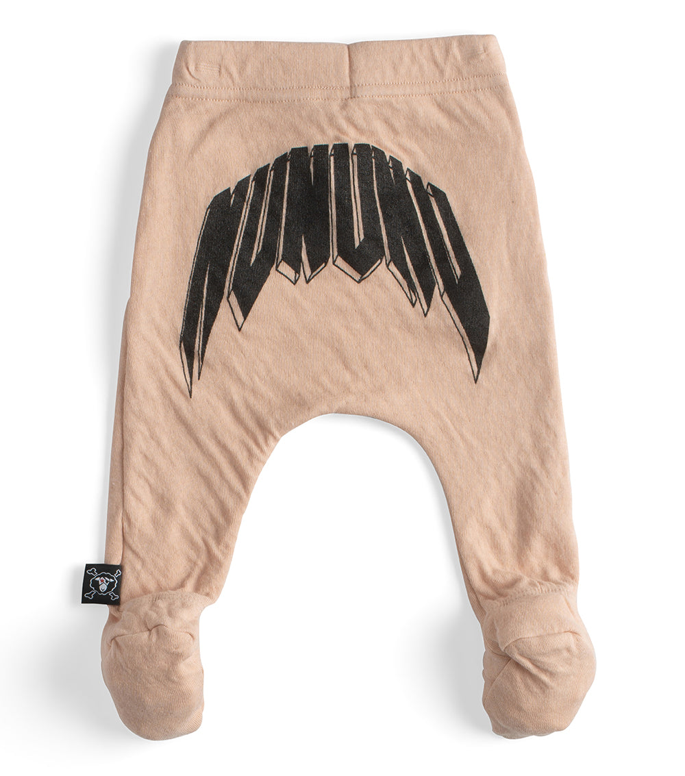 these nude baggy pants let babies get their swag on in the comfiest way, especially with our new “rawk” logo on the butt! the pants are nice & roomy for lots of fruitless squirming, and they don’t require shoes, so that’s one less thing. style ‘em with a onesie or matching nununu sweatshirt. luxurious, super soft fine rib cotton keeps the kid nice & cozy, like a constant hug, as they take in their strange new surroundings, blissfully unaware.