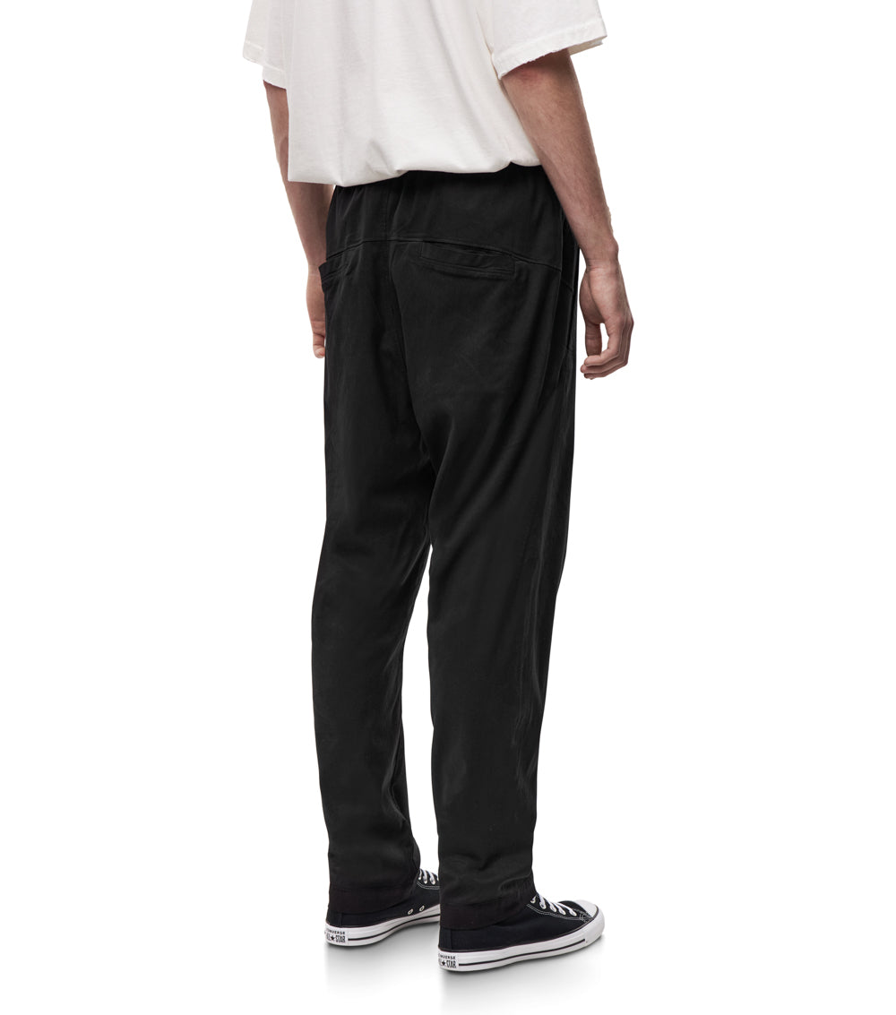 especially those who keep asking us for more, we hear you! like with these black drill pants, a favorite style the kids love we turned into a grown-up look that is refined & relaxed. these seriously light pants have maximum seaming action on top, yet they’re still completely cool & laid back with an elastic drawstring waist and free cuffs, side hidden pockets and asymmetrical ones on the back complete the look, every look. comes in blue too.