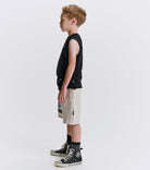 as mvp of team nununu, your kid should only have the best. that’s why these gender neutral sweatshorts are made of seriously soft smokey natural french terry. they’ve got human being printed loud & proud on the leg because that’s our mascot. no need to be anything other than you right? and because your little winner is our star player, we’ve got the number 10 printed there too, surrounded by a star on each side. sleek side pockets ensure they have the perfect place to stash their game plan & a cinched waistband makes sure they’re always ready to score the next point. oh yeah, and the bottom hem was left totally raw like the legs were cut right off. because we know your kid needs freedom to move & play.
