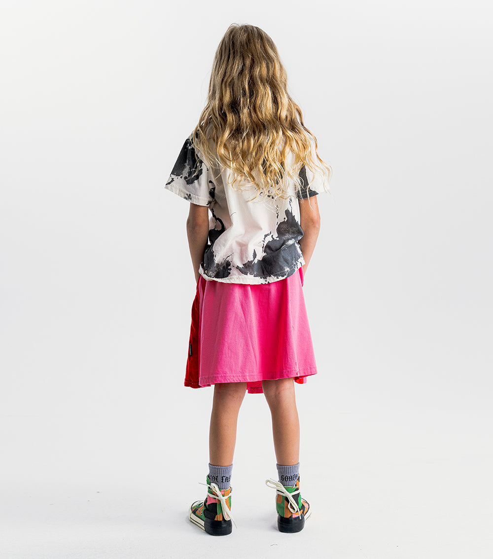 float like a butterfly and sting like a bee in this super rad boxing inspired skirt made of ready to move hot pink single cotton. it’s got a wider than usual waistband with a logo tag in the middle just like classic boxing shorts. peep the hidden side pockets outlined with an even hotter shade of pink. any kid wearing this skirt is definitely ready to fight — at least to get their way.