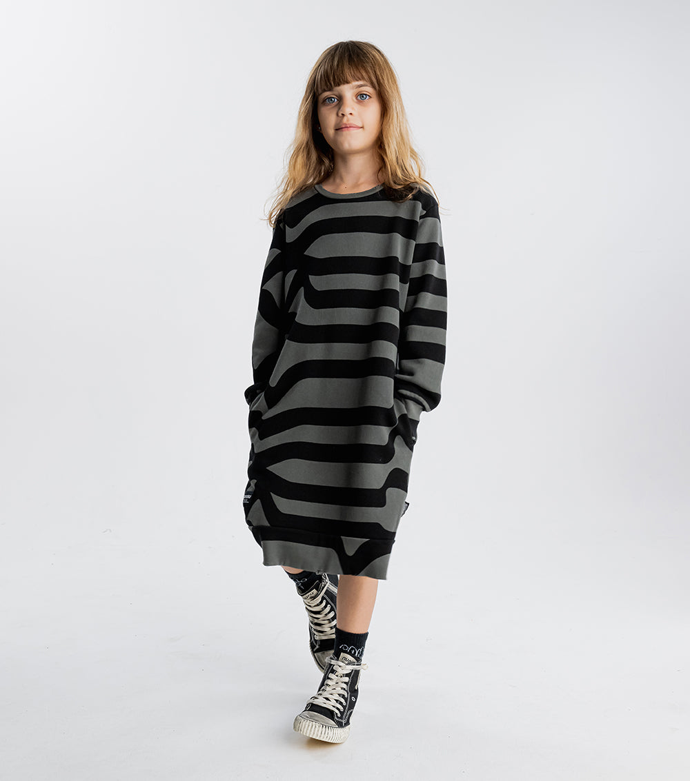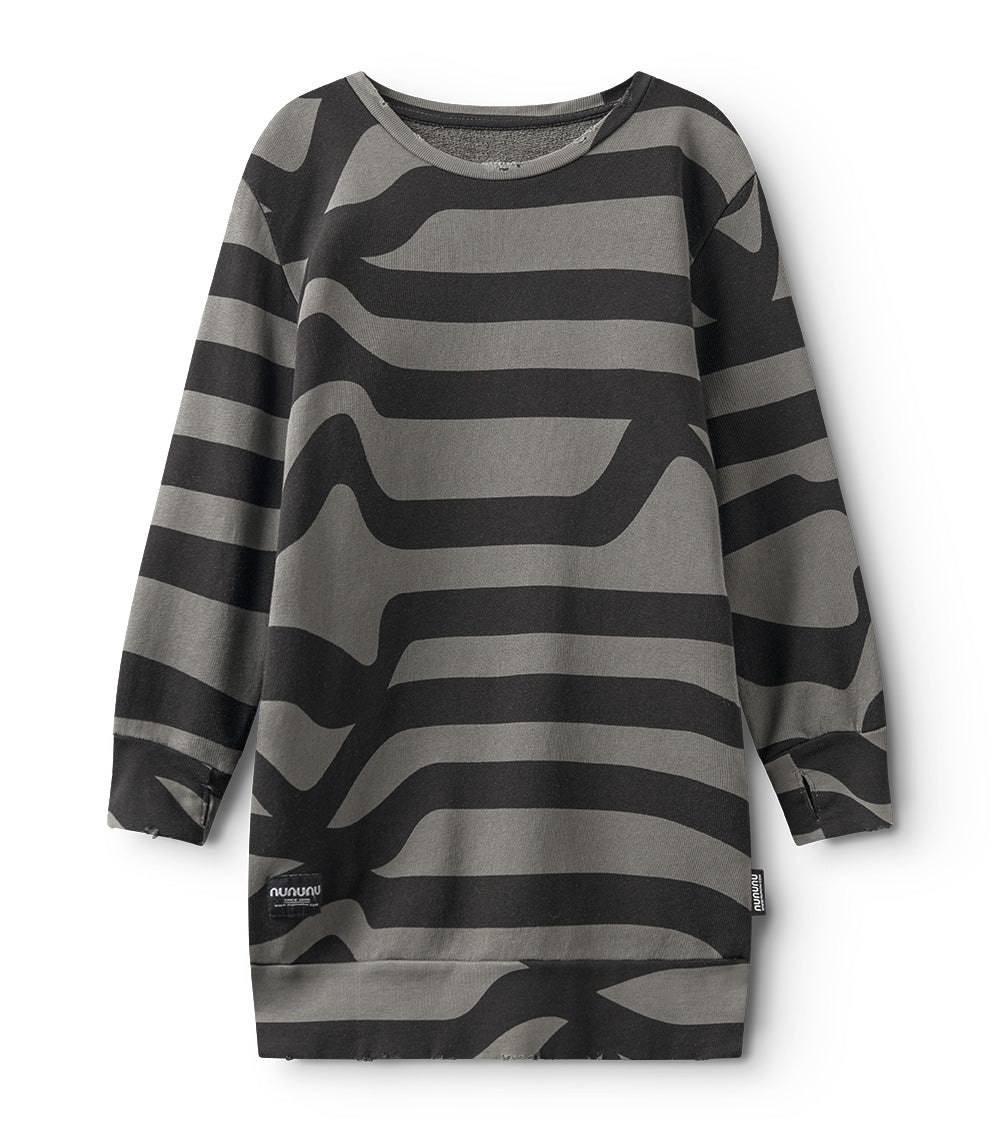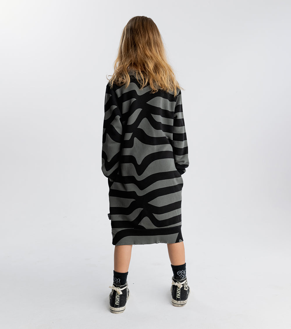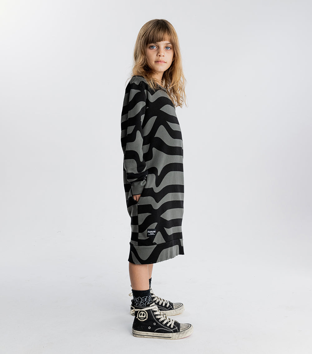 think classic nununu a dress, but this time with a little road inspired mayhem. this totally cool print is modeled after winding streets with no end in sight. because nununu kids couldn’t care less what the map says. they’re here to make their own way. this piece is made of super comfortable french terry for maximum movement. plus we added thumbholes & custom deconstructed edges to give it an even grungier look. perfect for winning cul-de-sac dance battles or sipping on something sweet in the back seat.