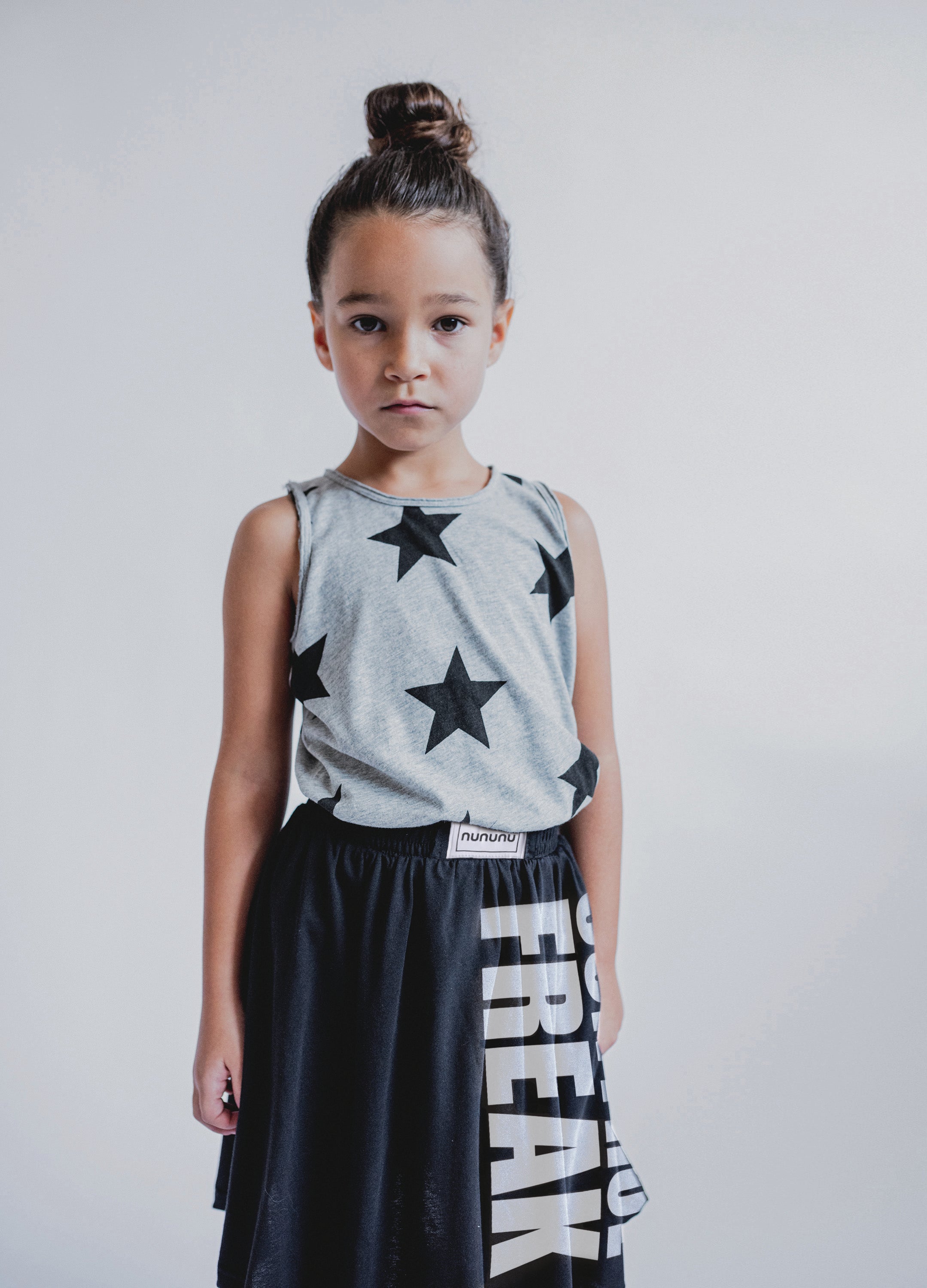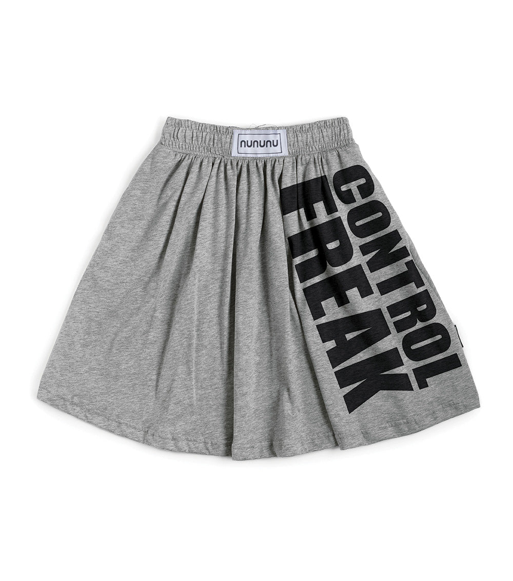 hear the horn riff from “gonna fly now” in your head as you go conquer your summer goals of having fun & hanging hard. the perfect summer heather grey skirt comes in easy, soft nununu cotton with a boxing-short waist featuring our control freak print. the elastic waist makes it easy to pull on over a swimsuit or pair with your favorite tee & chucks.