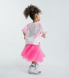 when you’re in the mood to be extra, this hot pink tulle skirt does not disappoint. it’s giving madonna vids, courtney love magazine covers & carrie bradshaw street style vibes. generous layers of tulle cascade down while a black elastic logo waistband keeps it snatched. pair it with tees & chucks to up the grunge factor, or go more literal with a leotard and ballet flats.