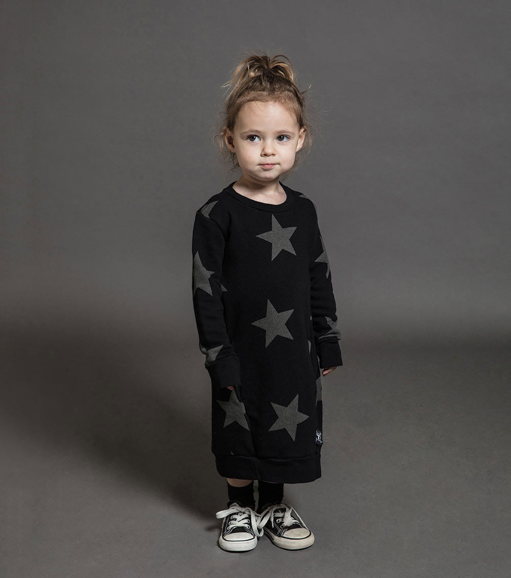 bring your “a” game. like a huge sweatshirt that morphed into the coolest dress, right down to the cozy thumb sleeves, the black “a” dress is a nununu classic that keeps coming back. this season, it’s all about seeing stars.