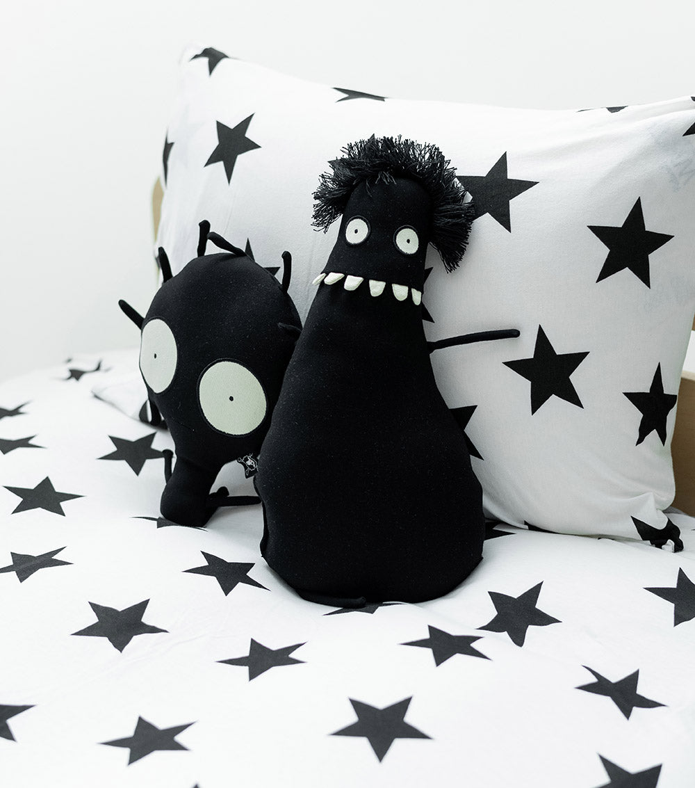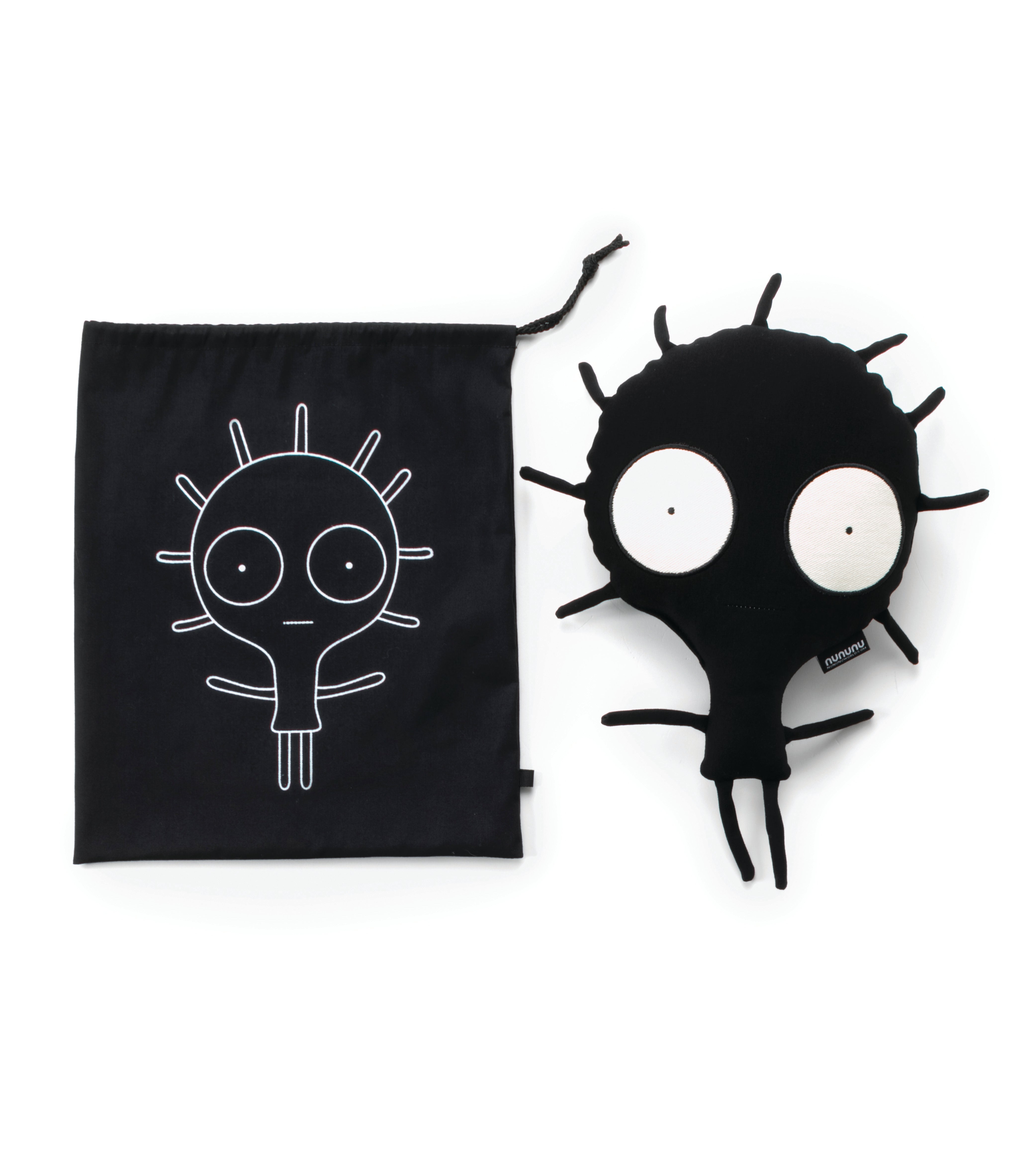 a little ghostly being with a lot more to offer. this boo doll is your spooky cool companion to the park, to shriek angst that would make your parents mad, and to have a friend when no one else understands. comes in a black printed linen case. This doll is the outcome of a collaboration with artist Miki Ohana aka “wild tailor” whose art reflects innocence mixed with a sense of rebelliousness, very much like the nununu spirit and vibe. Both miki and nununu convey in their message an unusual world of images that celebrate all that is different, unconventional and mainly not mainstream. This doll is the perfect representation of all that and is a voice to all that are different and like it!