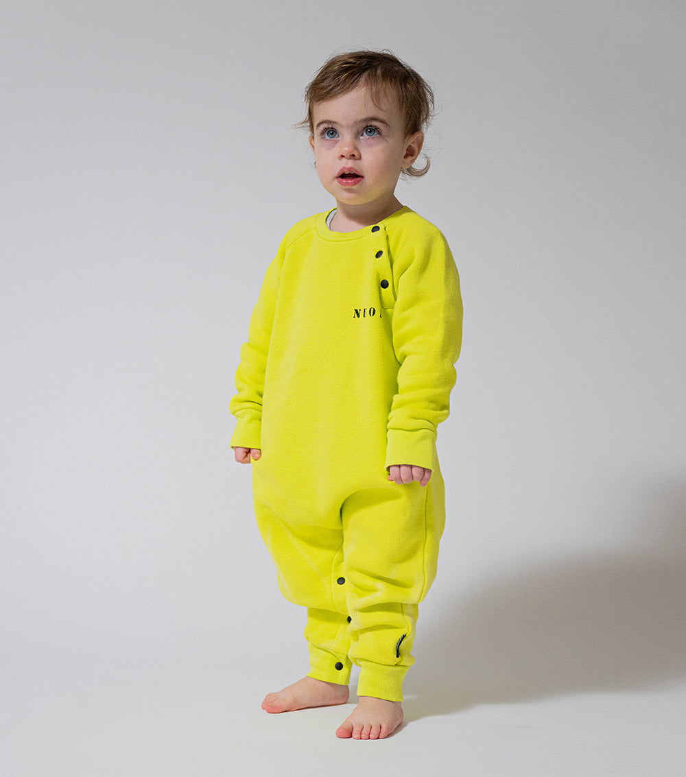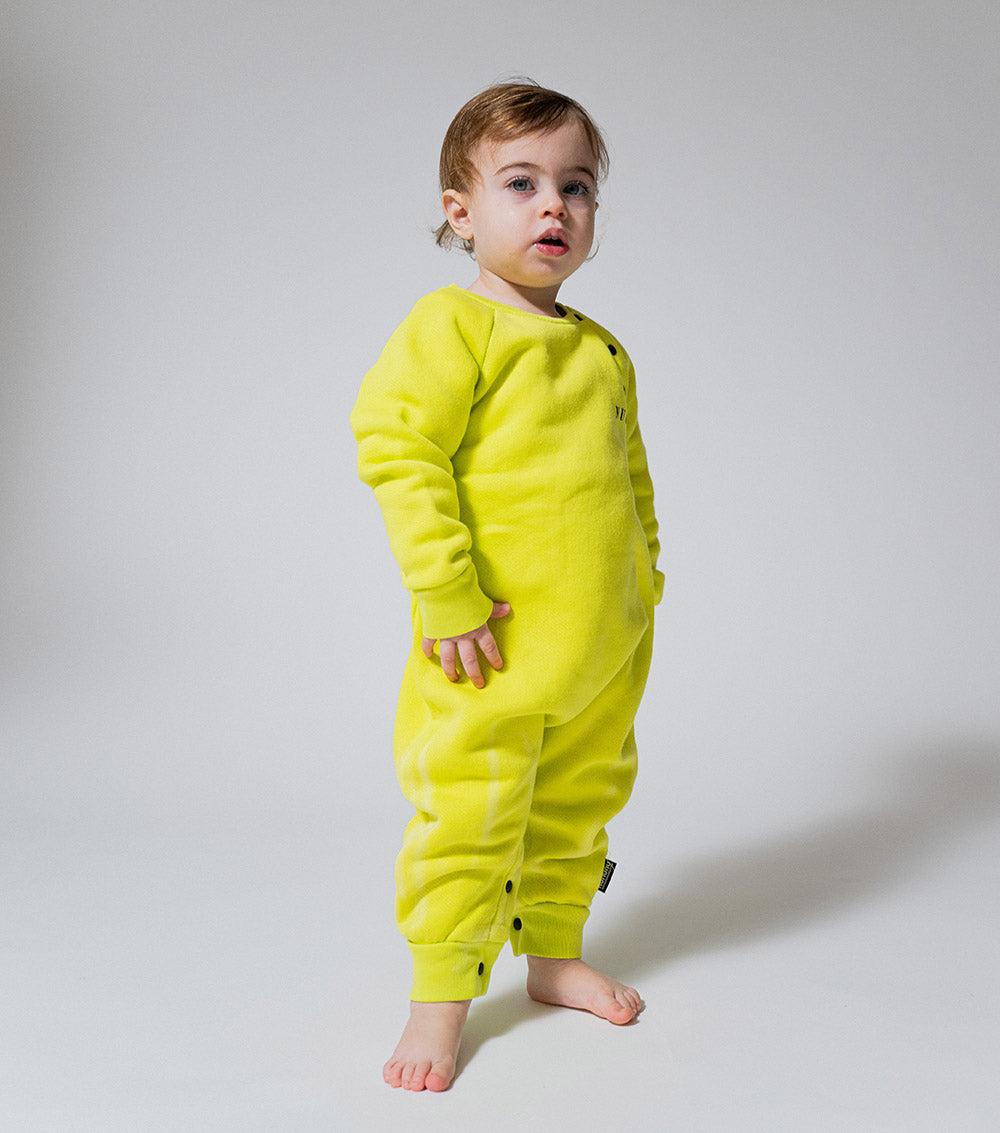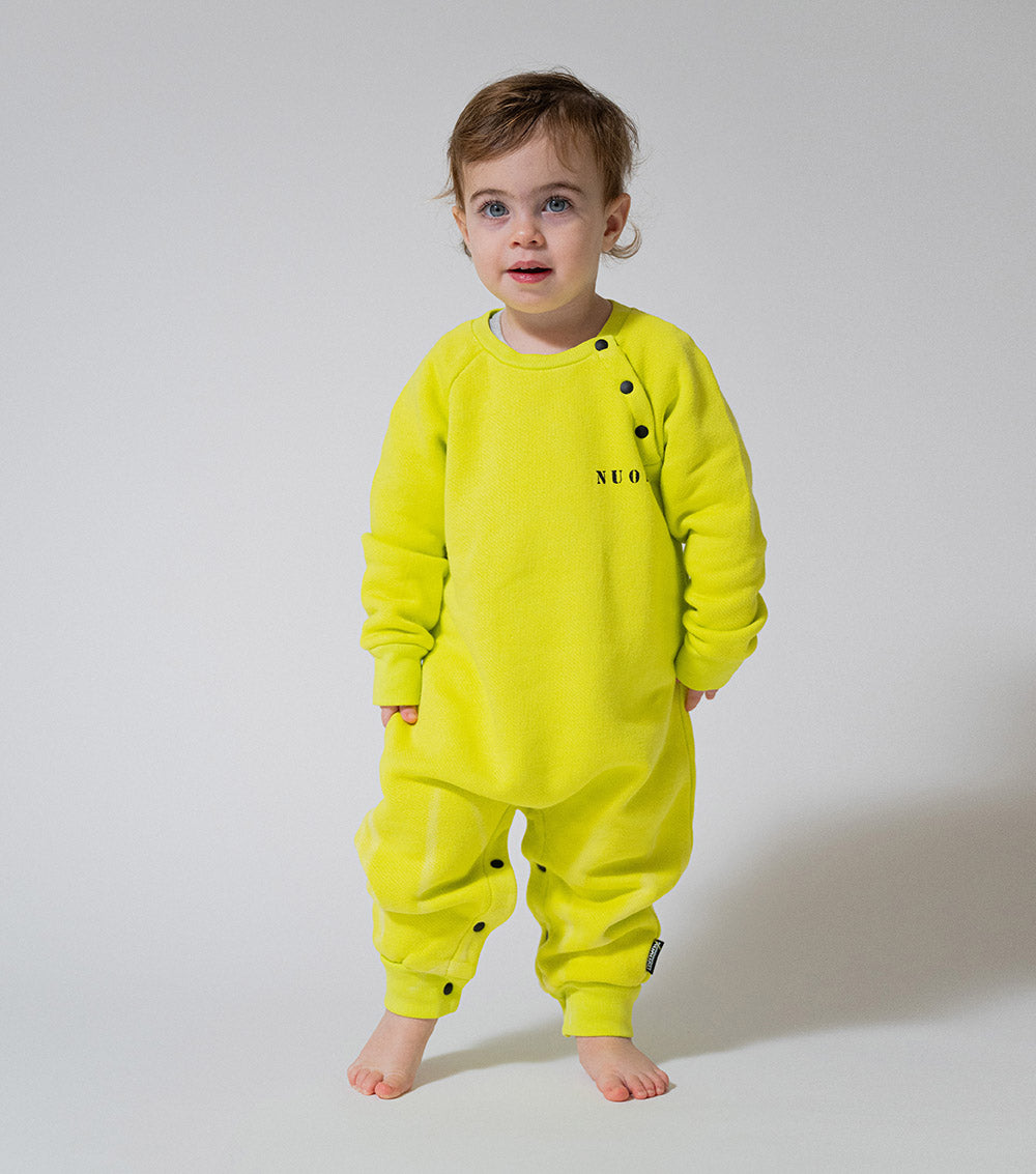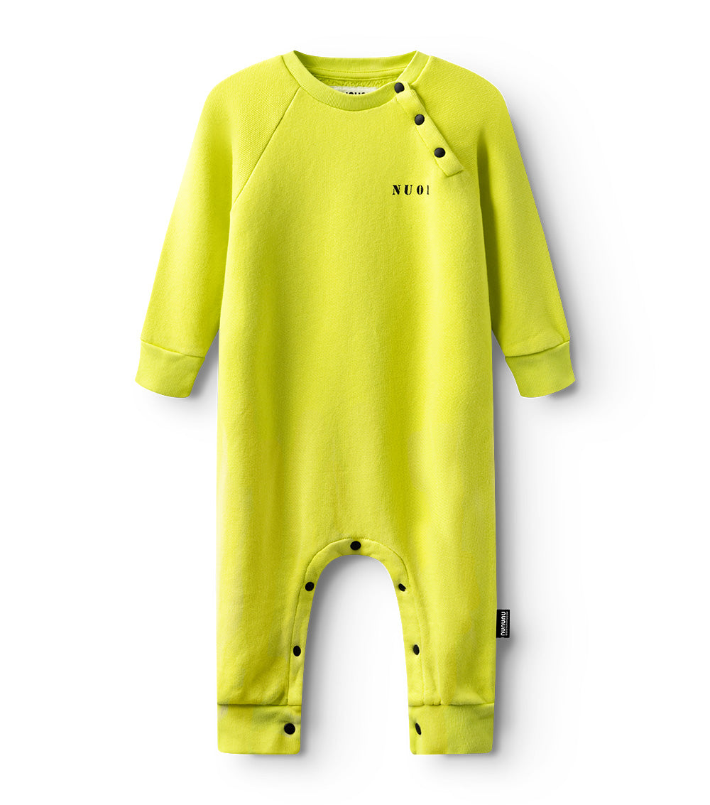 we’re obsessed with these hot lime brushed french terry overalls for baby boys & girls. they’re pretty much the perf winter fit. they're soft, they're cozy, they’re functional. we’ve got sturdy snaps at the top and all the way up the middle & bottom of the legs to make changing a total breeze. of course, it’s also got NU01 printed on the chest to make sure the world knows that this baby has been number one since day one.