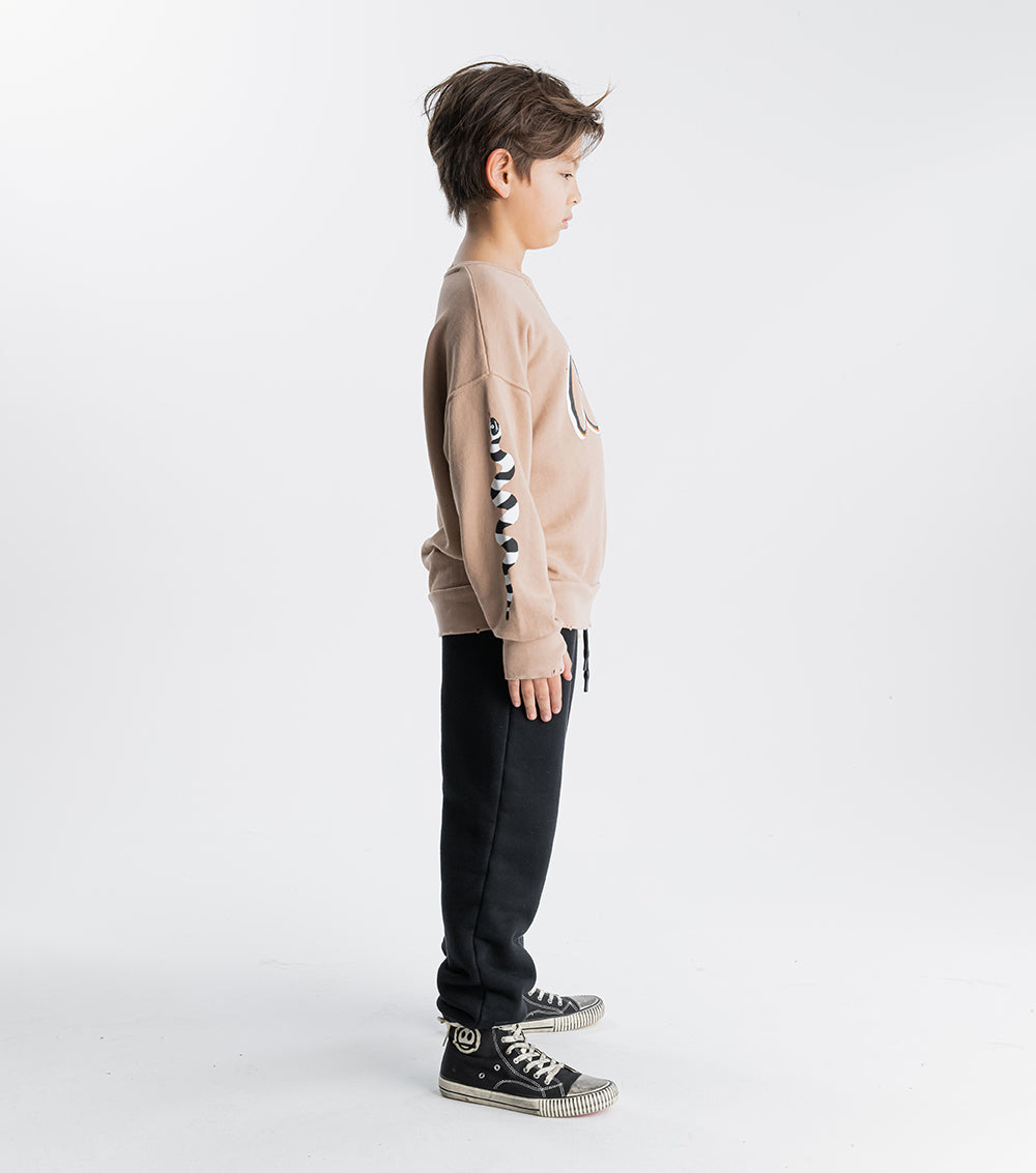 everyone needs a pair of gender neutral black sweatpants. so we made these out of heavy french terry so they’re even cozier than they look and a little bit denser than usual for added warmth & blanket-like comfort. for some rebel flair we added a spooky skull patch created in collab with artist shay id alony. they’ve got a nice slouchy fit & roomy side pockets for hiding toys secretly stashed from siblings. these pants are perfect for hitting up a friend's house or just procrastinating on the couch all day long.
