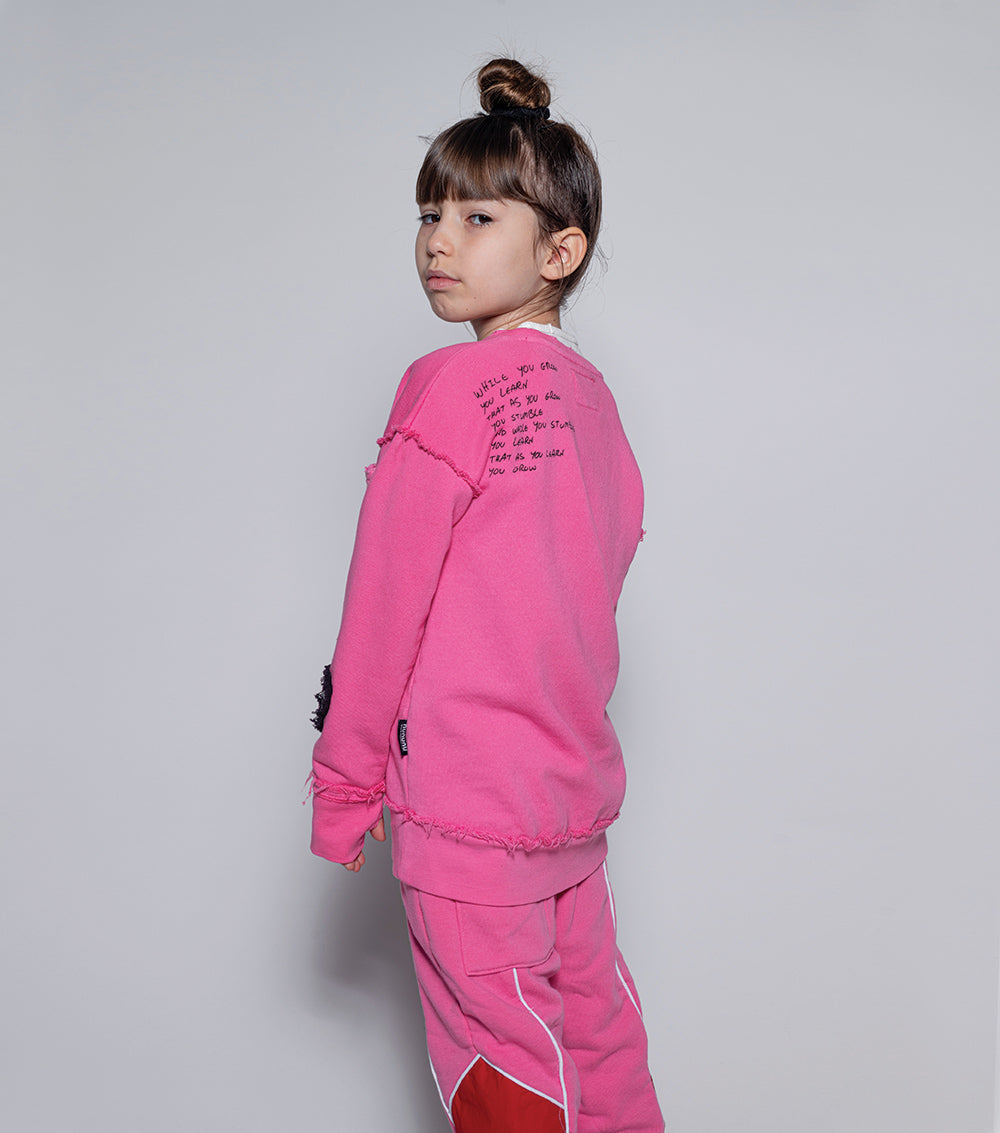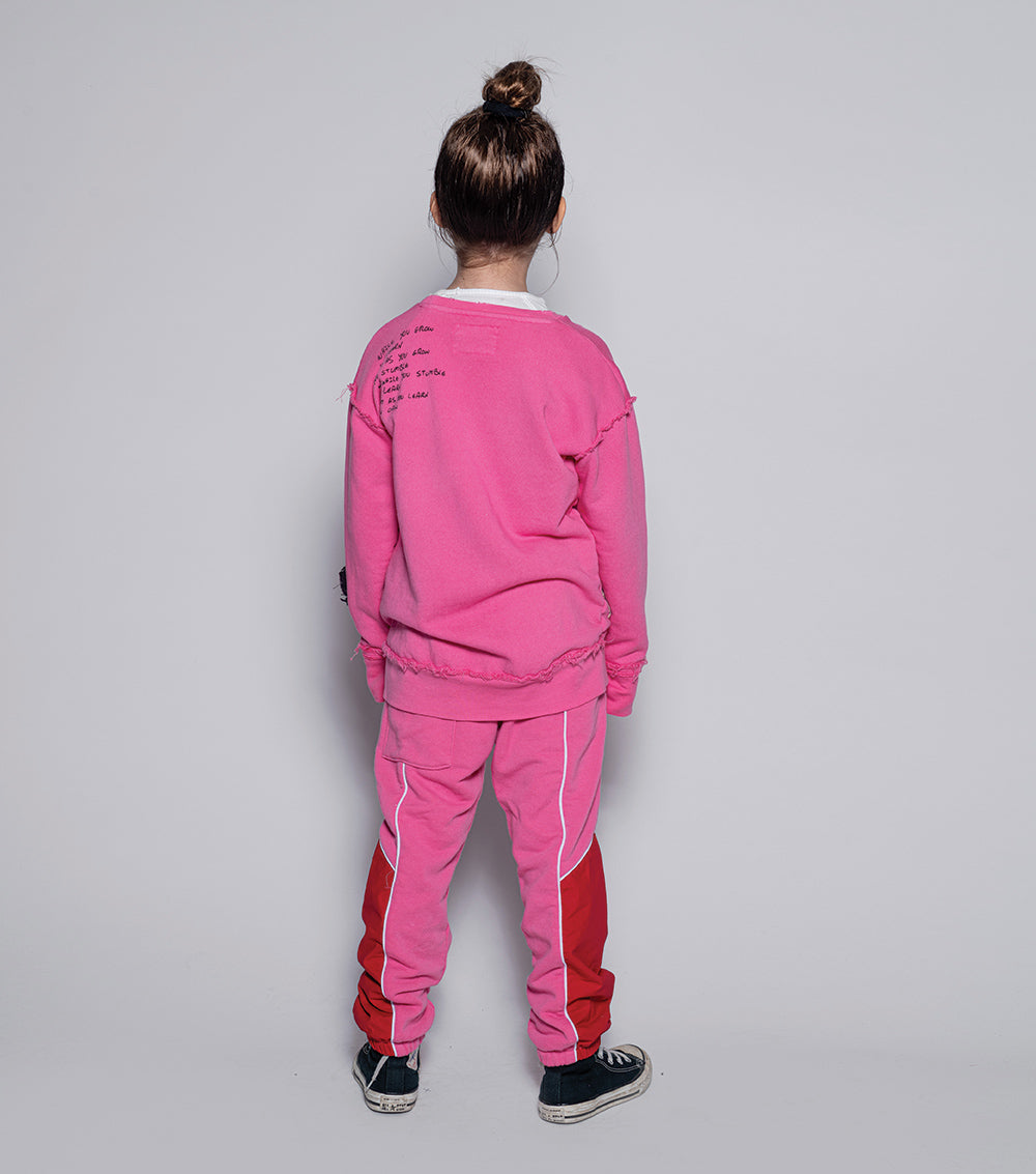 just when you thought you’d seen it all, here we come with a fresh take on sweatpants with that ‘70s sportswear vibe. with hot pink french terry as the backdrop, these unisex sweats are relaxed but not baggy, with white piping up the front and around contrasting panels of red nylon. an elastic waist & cuffs keep the shape tight. oh, and the care tag is on the outside because we don’t do things like everyone else.