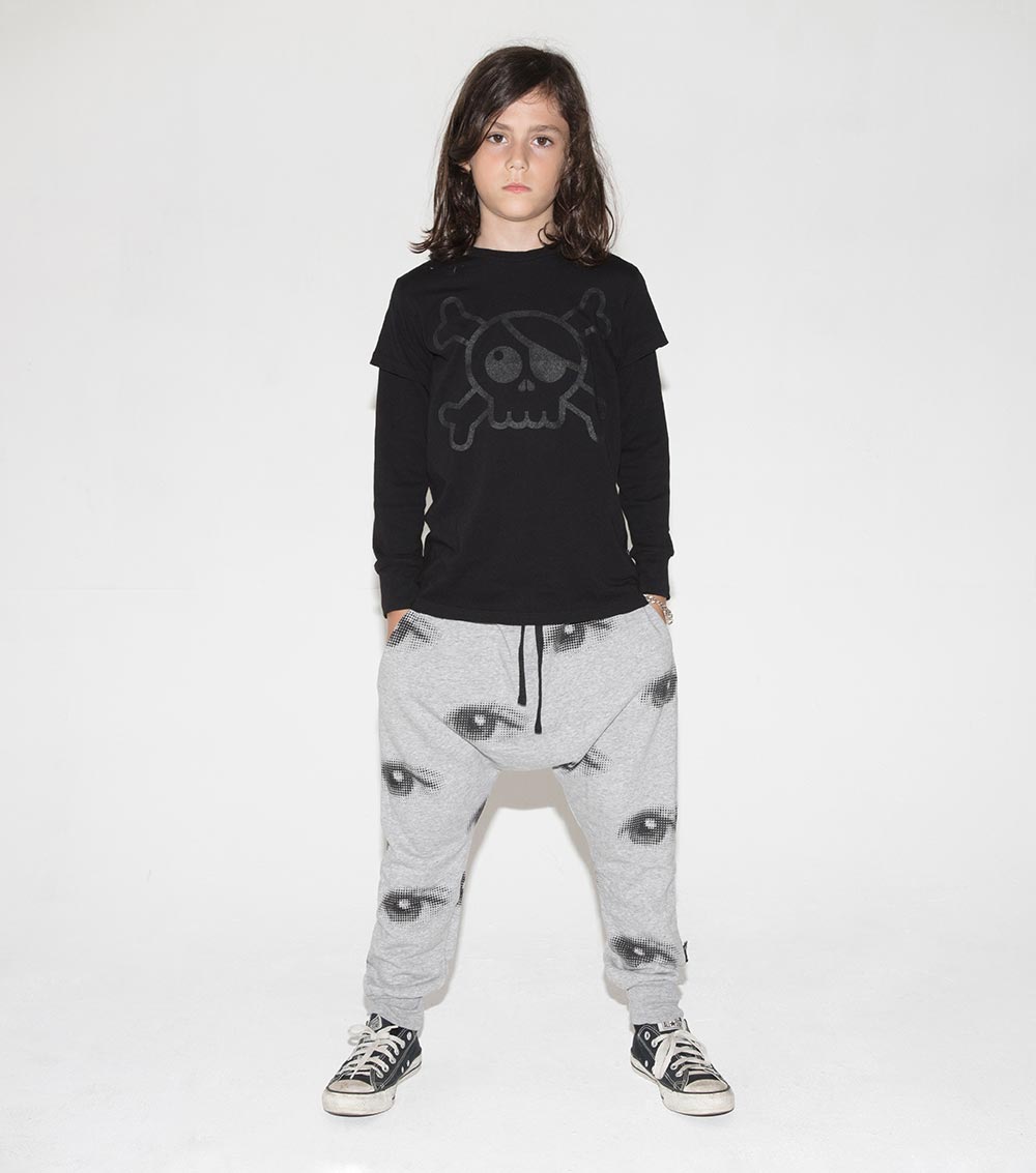 kids are always showing us different ways of looking at things. hence, the many dot-pixel eye patches peeping from these heather grey baggy pants. they’re roomy & slouchy, giving legs the freedom they need to run, play & perhaps even sit still at times.
