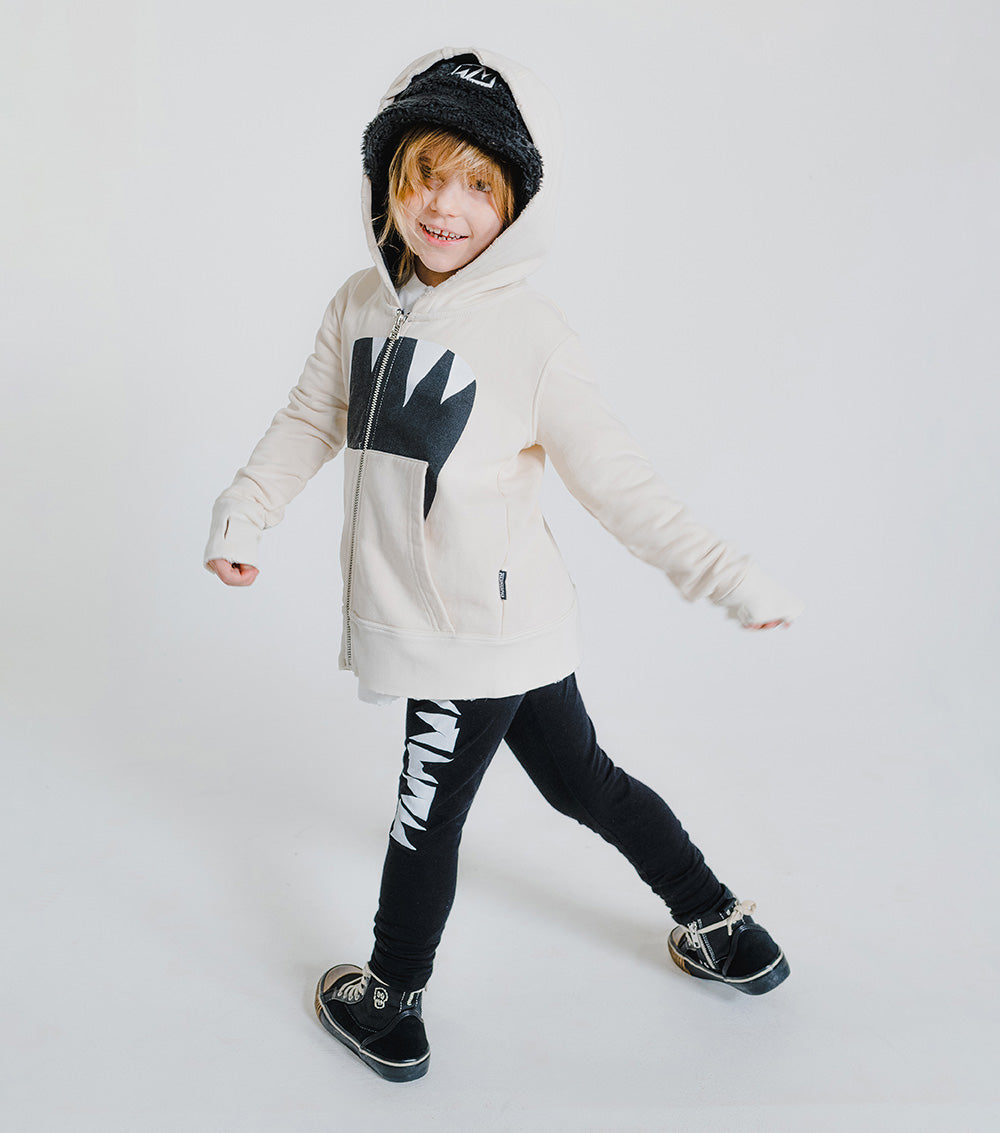 the nununu classic unisex leggings return in solid dyed graphite. this time they’ve got the new, abstract, angular version of our logo running down one side. stretchy-soft nununu cotton makes it easy to play, run, and take over the world. the care tag rides on the outside cuff, because we don’t do things like everyone else.