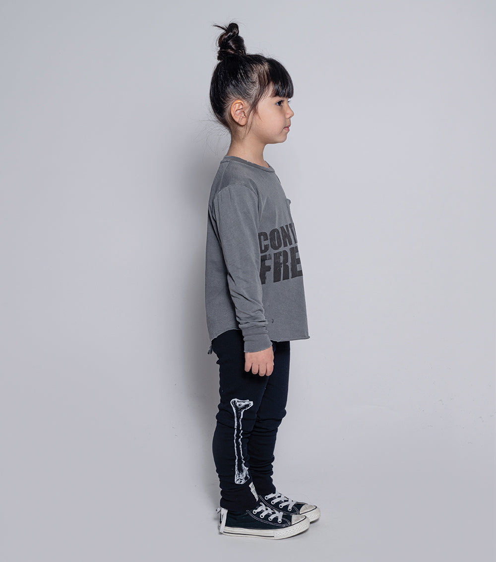 it’s our beloved black unisex leggings, this time with crazy bones down the side. these soft-as-hell leggings give kids the freedom they need to dance, play & eventually rule the world. layer them under a dress or pair them up with our t-shirts & sweatshirts. oh, and the care tag is on the outside because we don’t do things like everyone else.