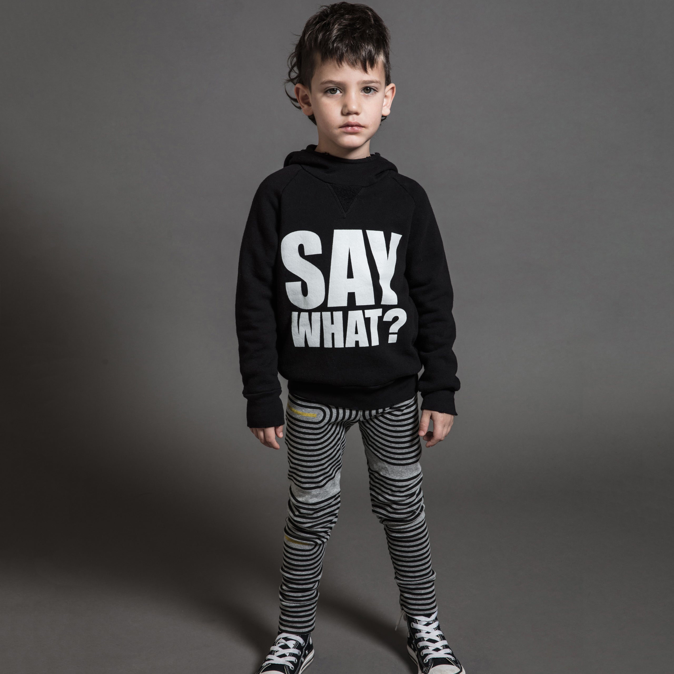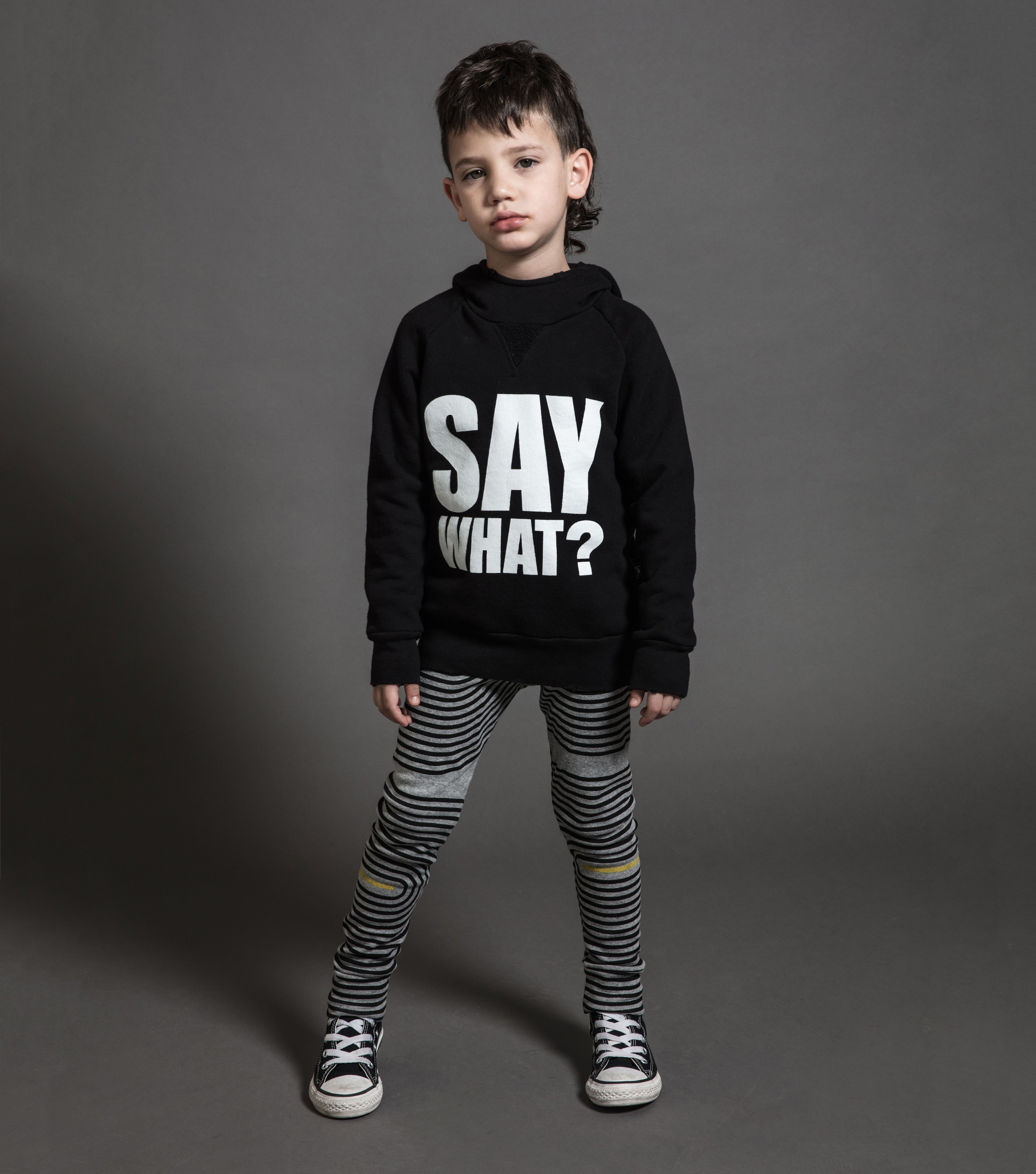 a nununu classic returns in our new spiral print. which is cool because you can casually get in a trance while keeping an eye on the kid at the playground. stretchy-soft nununu black cotton makes it easy for boys & girls to play, run, and take over the world.