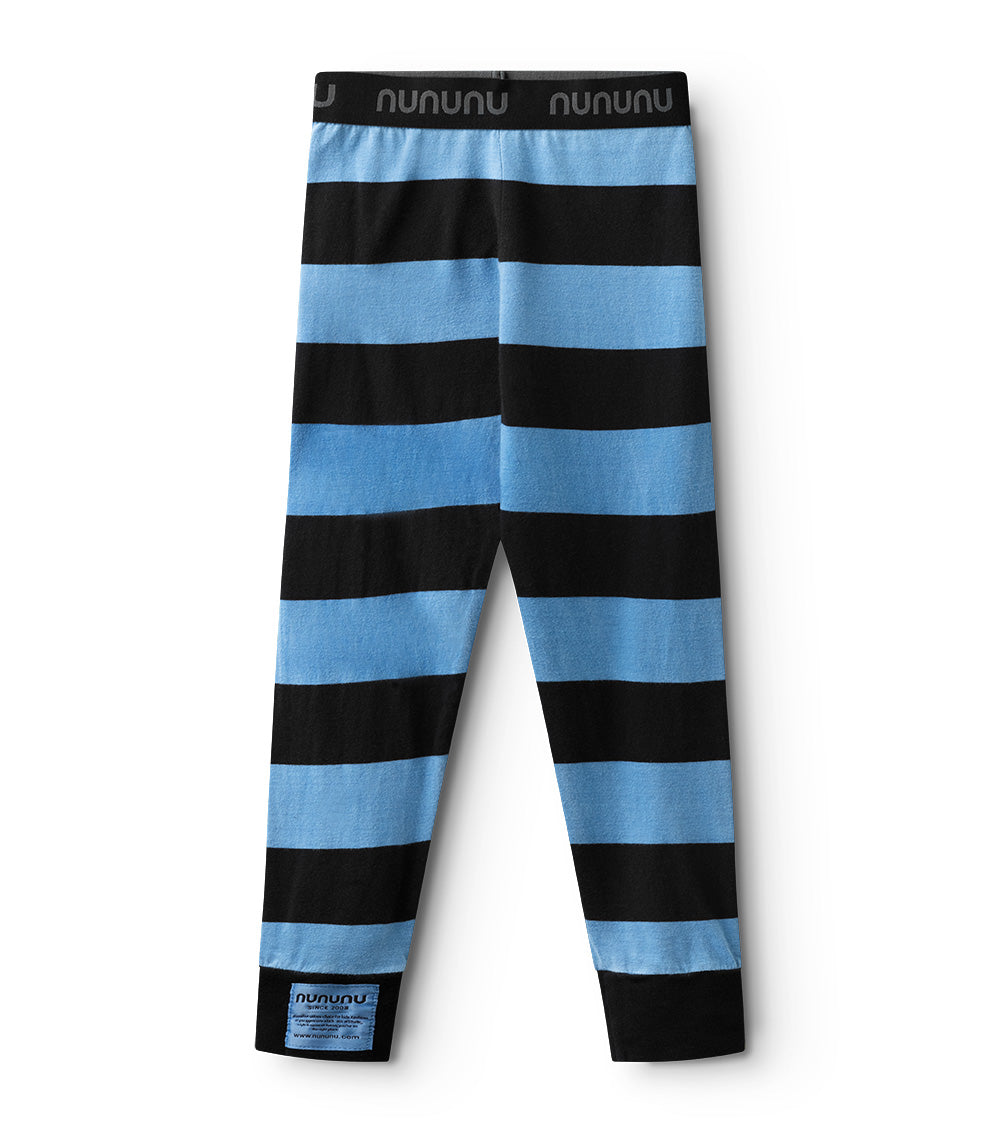 slip on these unisex blue/black striped leggings & fall into a world of wonder. soft, single-layer cotton is nice & light throughout, with solid tight cuffs & an elastic logo waistband to keep things secure. they’re fun to layer under dresses for circus vibes, or just wear with a t-shirt and sneakers.