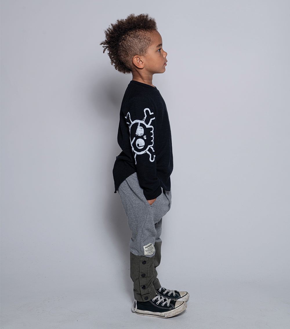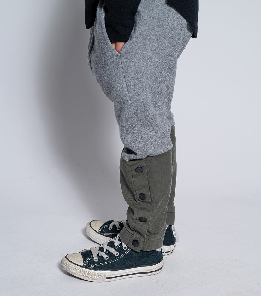 it’s a 2-in-1 deal with these unisex hybrid sweatpants. the top portion is soft grey french terry, like your favorite sweats. then, at the knee they switch up to olive green woven pants with buttons down the sides for extra space. zip-fly look (no actual zipper) and elastic drawstring waist keeps it super tight.