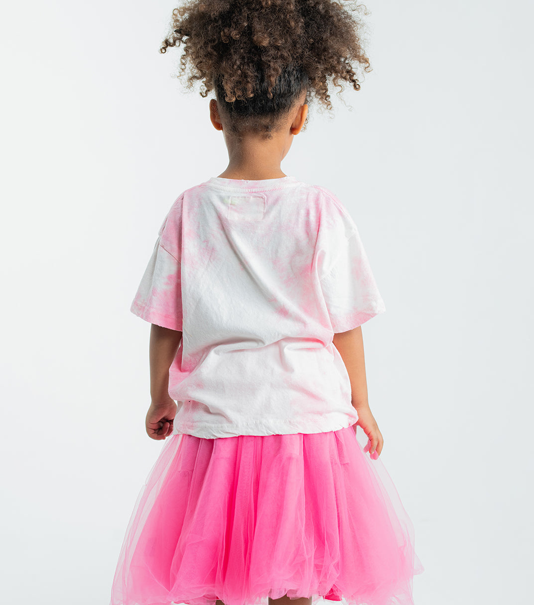 when you’re in the mood to be extra, this hot pink tulle skirt does not disappoint. it’s giving madonna vids, courtney love magazine covers & carrie bradshaw street style vibes. generous layers of tulle cascade down while a black elastic logo waistband keeps it snatched. pair it with tees & chucks to up the grunge factor, or go more literal with a leotard and ballet flats.