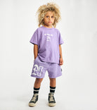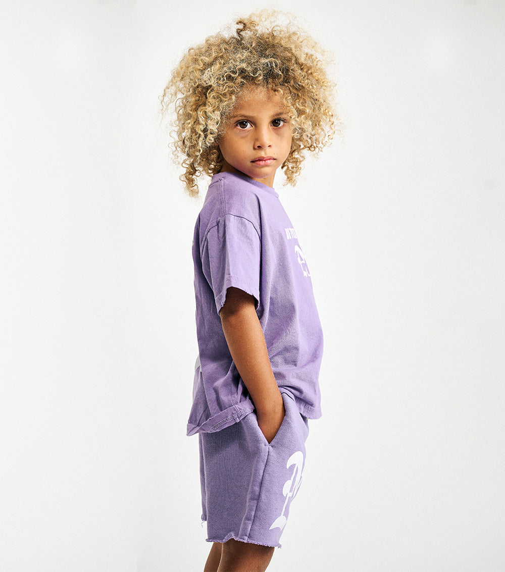 let your kid get their vibes on with this super comfy mauve mist sweatshorts. they’re a basic cut with a N printed on the side in a gothic font fit for fashion royalty. side pockets are there for keeping hands warm and the raw hemlines make this the perfect cool kid look.
