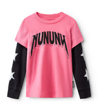 this single cotton twofer is a simple gender gender-neutral, hot pink long sleeve fit. with custom deconstruction for that cool kid flair. but what really stands out is the contrasting black print that warns onlookers with a nice & big nununu print.