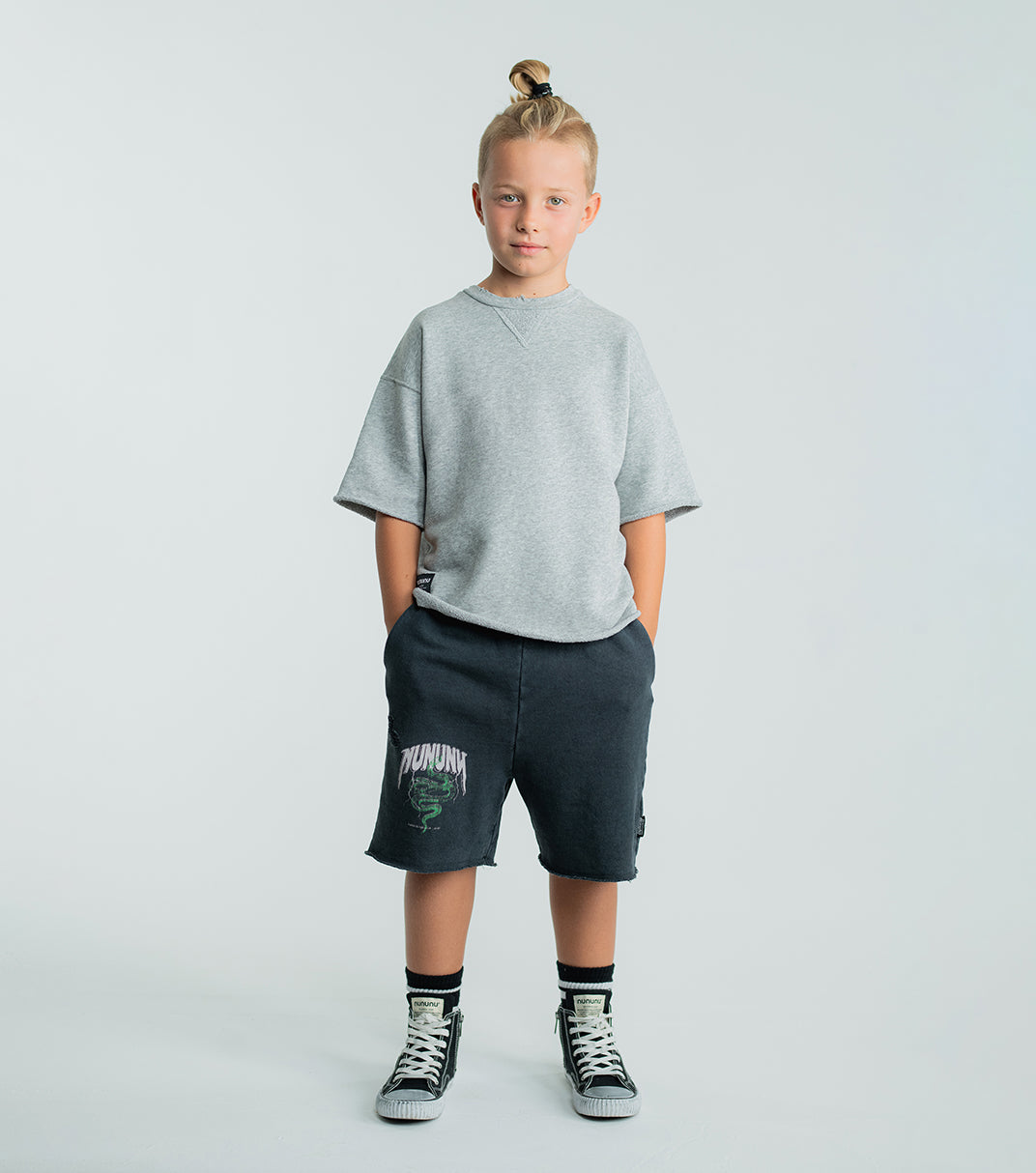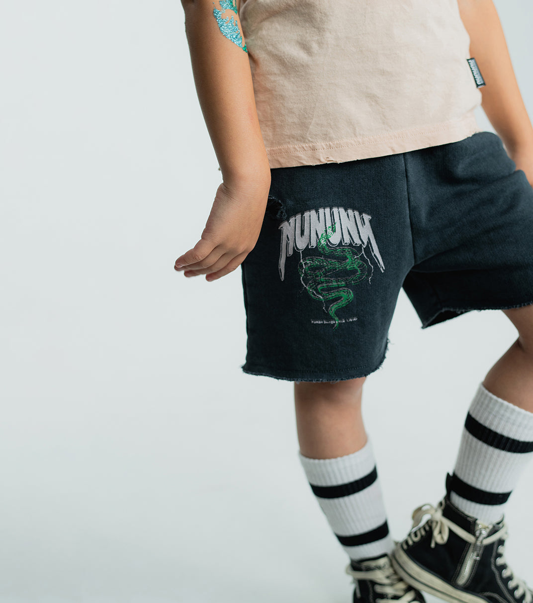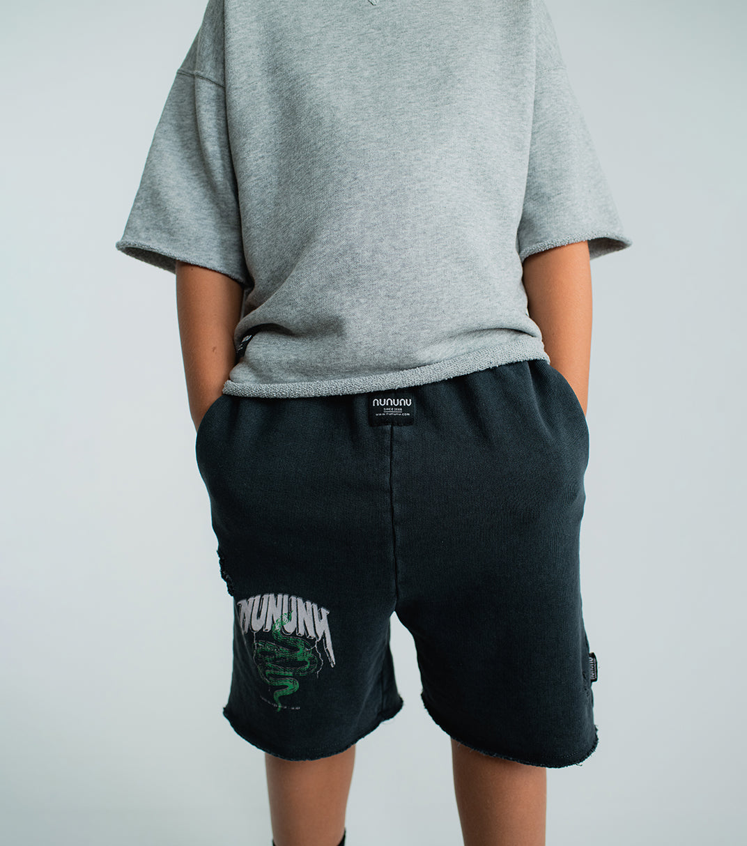 did you know snakes are a symbol of rebirth & transformation? for us, that’s the spirit of summer ‘23, and the reason why we have this powerful creature slithering on the leg of these quintessential dyed graphite gray sweat shorts. it’s paired with a blocky version of our logo with drippy edges for a dramatic juxtaposition. the shorts themselves are incredibly soft, with side pockets & a thin elastic waistband. the tag rides on the outside, because we don’t do things like everyone else.