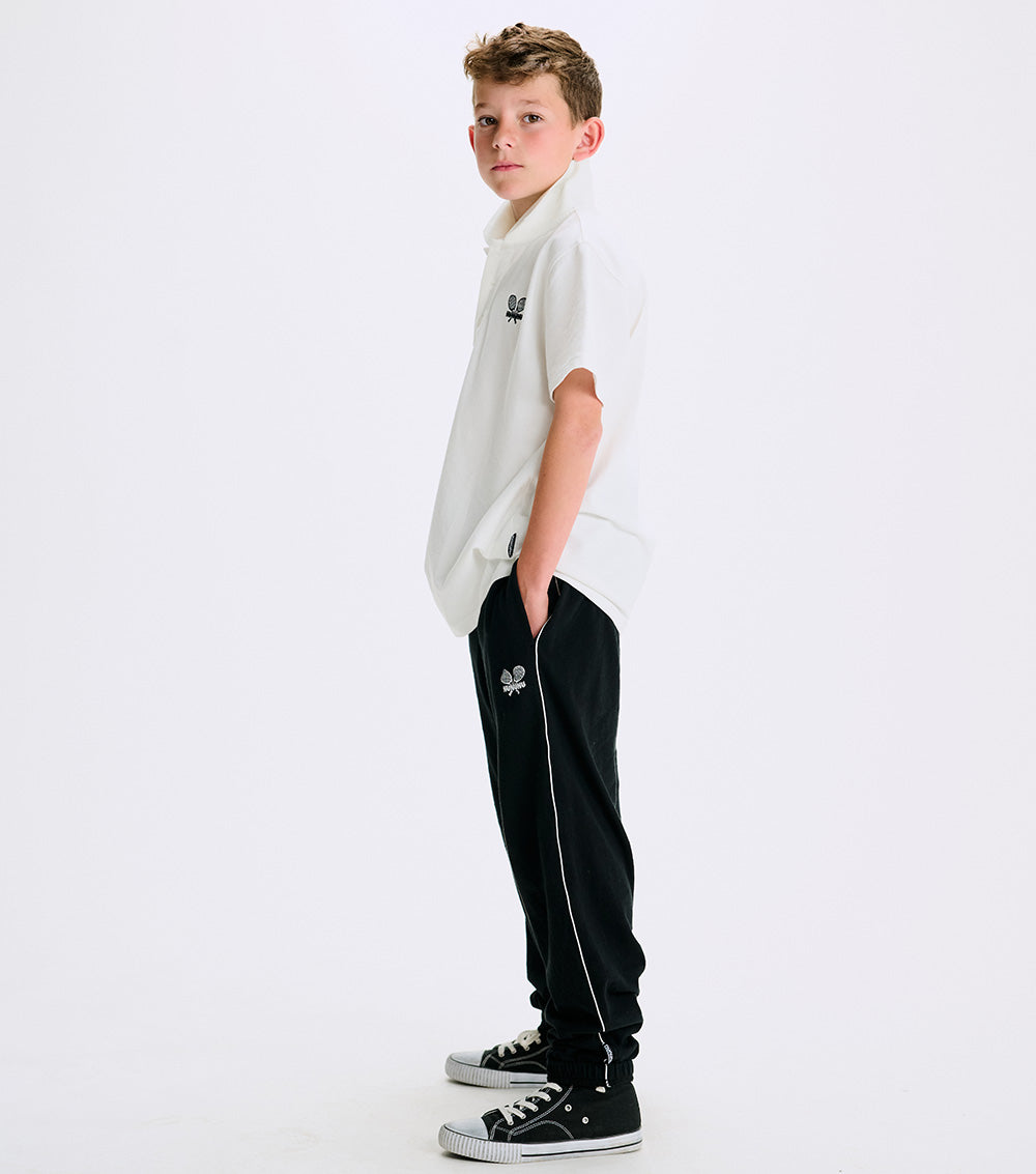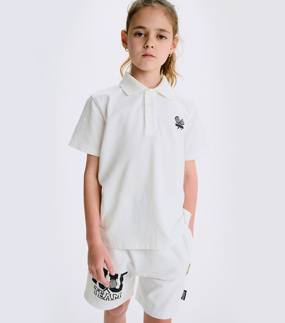 need a look that screams country club connoisseur? this is it. it’s a polo shirt made of white cotton pique so it’s extremely soft, flexible & cozy for all day play. even better, we've ditched the usual polo cut in favor of a t-shirt kind of vibe on the inner body but kept it classic with a soft rib collar, three tone-to-tone buttons, and clean edges. to top off this epic fit, our nununu dueling tennis rackets logo is embroidered in black on the chest, hinting at an impending challenge.