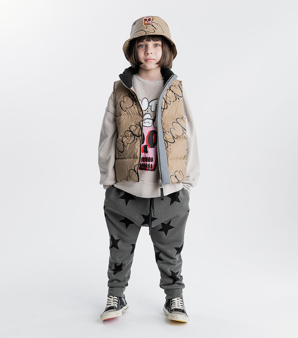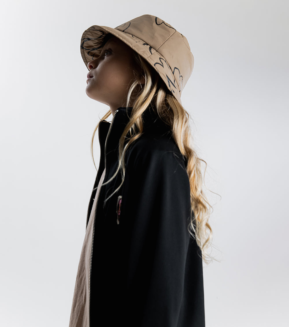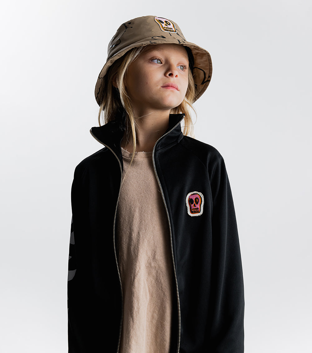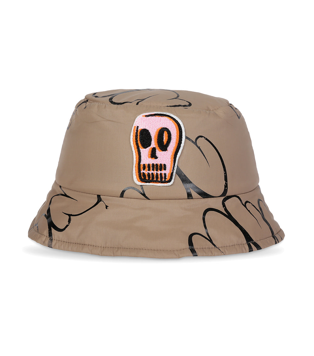 remember bucket hats? we wore them in the ‘90s and now…they’re baaaaack. let the boys & girls be like ll cool j, rocking this level of headwear all fall and winter long like a boss. it’s made with slick coffee-colored nylon so it’s ready to make every day a good hair day, no matter the weather. its got bubbly diagonal nununu logo print all over to add edge. not to mention a colorful skull patch created in collab with artist shay id aloni to spook it up a little. just how we like it.