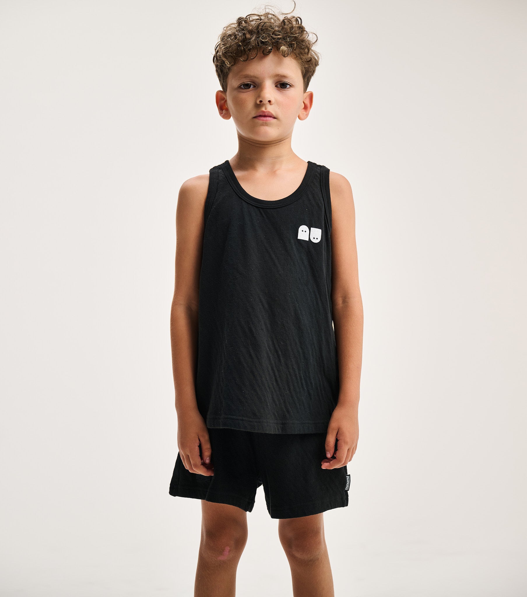 nothing says chill like this boo-tifully soft summer lounge set in black double single cotton. it’s a gender-neutral tank top & shorts combo that’s eerily comfy & scary cool. perfect for staying at the ideal temperature on hot summer nights. of course, the tag rides on the outside & our signature little spookies are floating along the chest ready to scare off any monsters that might be lurking under the bed.