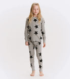 no slobs here. this cotton cozy heather grey loungewear set lets boys & girls lounge in total style with a long sleeve tee & leggings spangled in our star print. worn together or separately, this cozy two piece is perfect for attending the hottest sleepover parties, or just playing around the house.