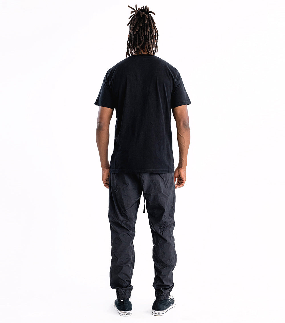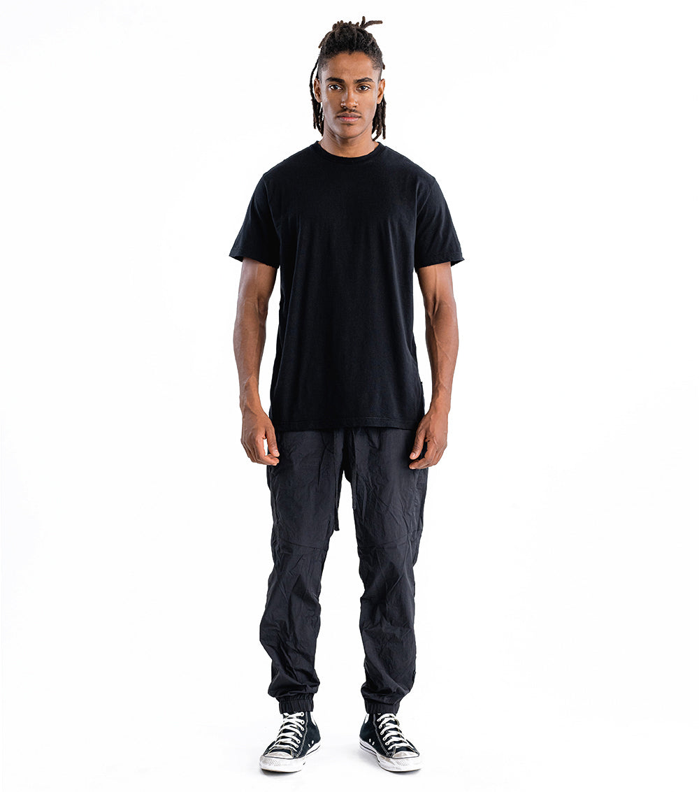 this may just be the perfect black t-shirt you never knew you needed. perfectly fitted in our super soft cotton, this T is the go to piece to complete any laid back look, edges are raw and deconstructed.