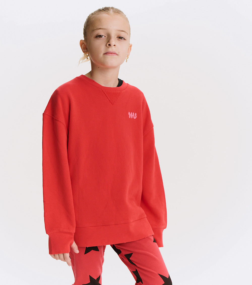 who says a sweatshirt has to be basic? not us. this everyday unisex sweatshirt brings the heat just how we like it in smokey red french terry with a flash of hot pink in the letters nu stitched up top. it’s got a fuzzy triangle neckline detail for sporty flair & custom deconstruction for some added edge. plus, thumbholes for the cool kid factor, obviously. it’s soft, tough, and totally timeless—the one they’ll wear with everything. layers easy, lasts forever (or close enough). trust, you’re gonna want one in every color.