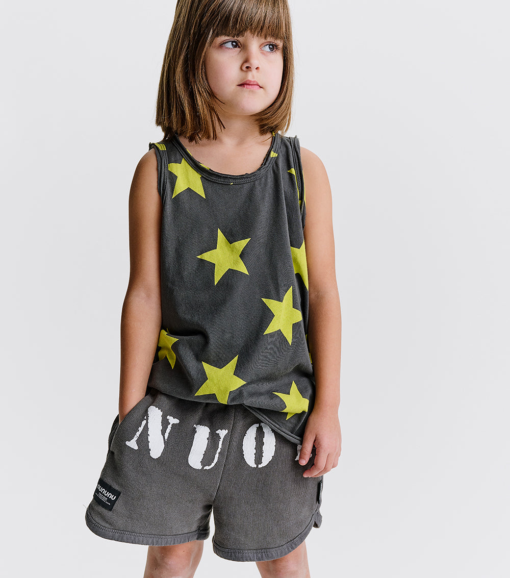 your gym class hero finally found the perfect fit. these shorts. they’re a gender neutral cut made of graphite french terry that's soft enough to actually get them up in time to be fashionably late for the morning school bell. the bottom hems have trim that’s a little rounded, coming up & overlapping a bit on the sides like classic retro gym shorts. of course, pockets are there for stashing notes passed in class and nu01 is printed right across the front in big serious, crumbly letters. because this kid’s rightful place is number one. no contest.