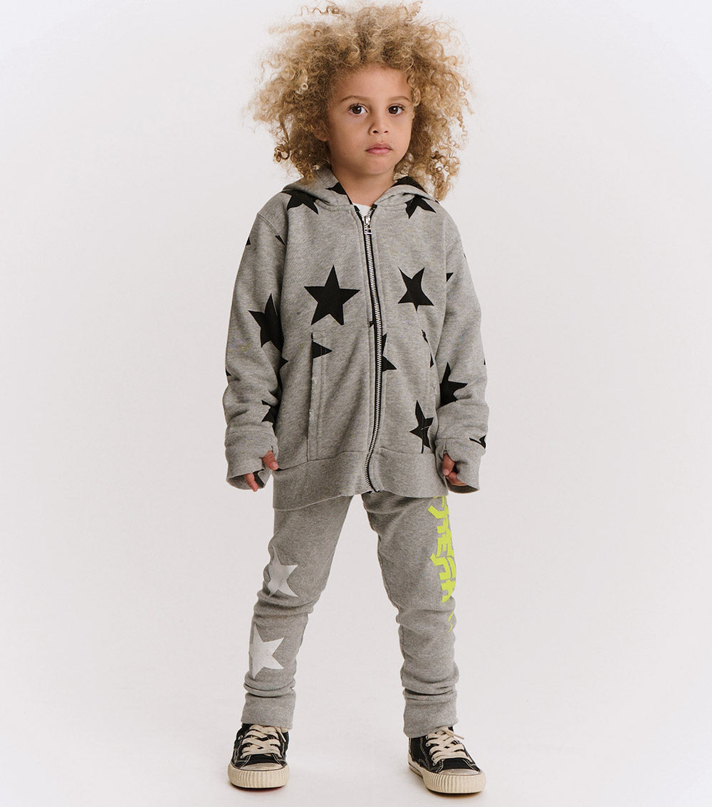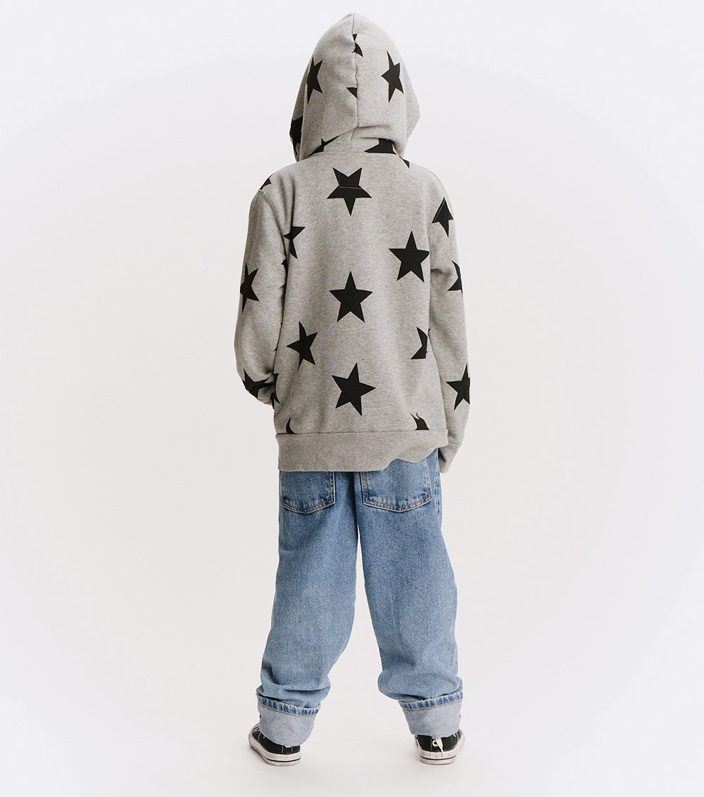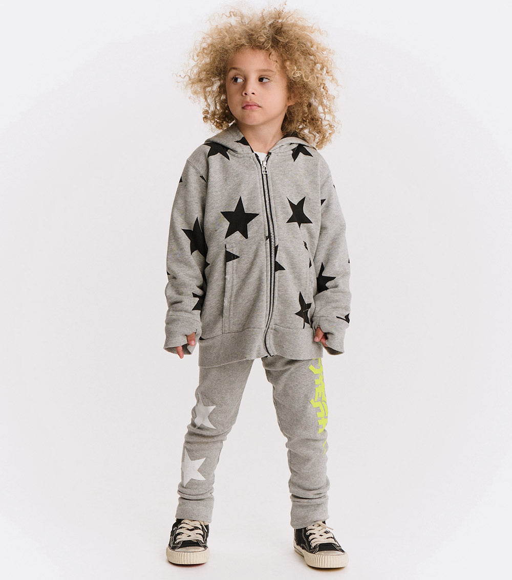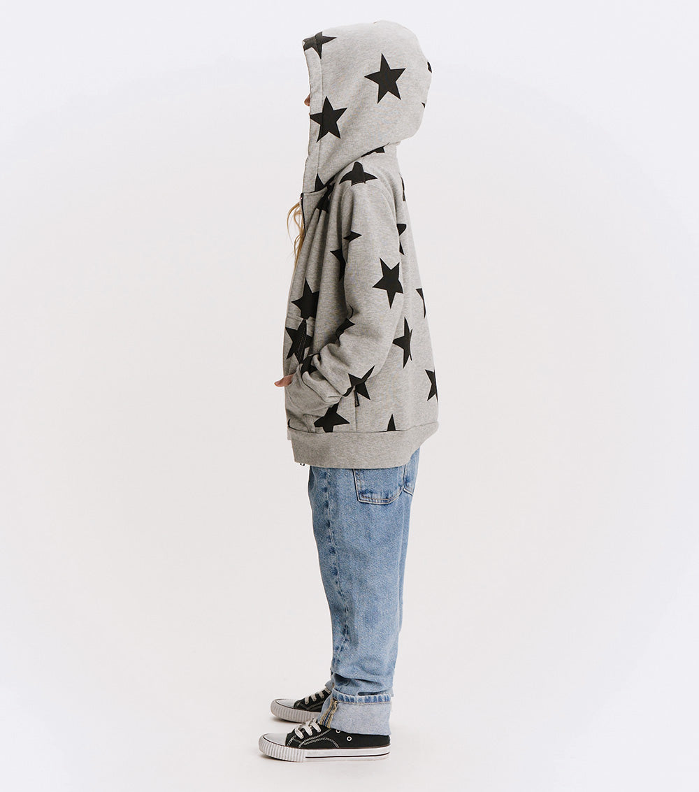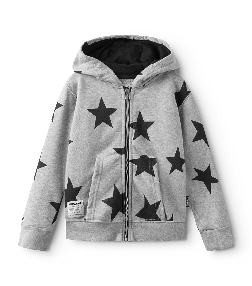 if you are what you say you are, a superstar – then show it. this cool grey hoodie is a nununu classic with an all-over star print, roomy kangaroo pockets, and thumb holes that make this piece cozy, comfortable, and cool. wear your stardom on your sleeve.