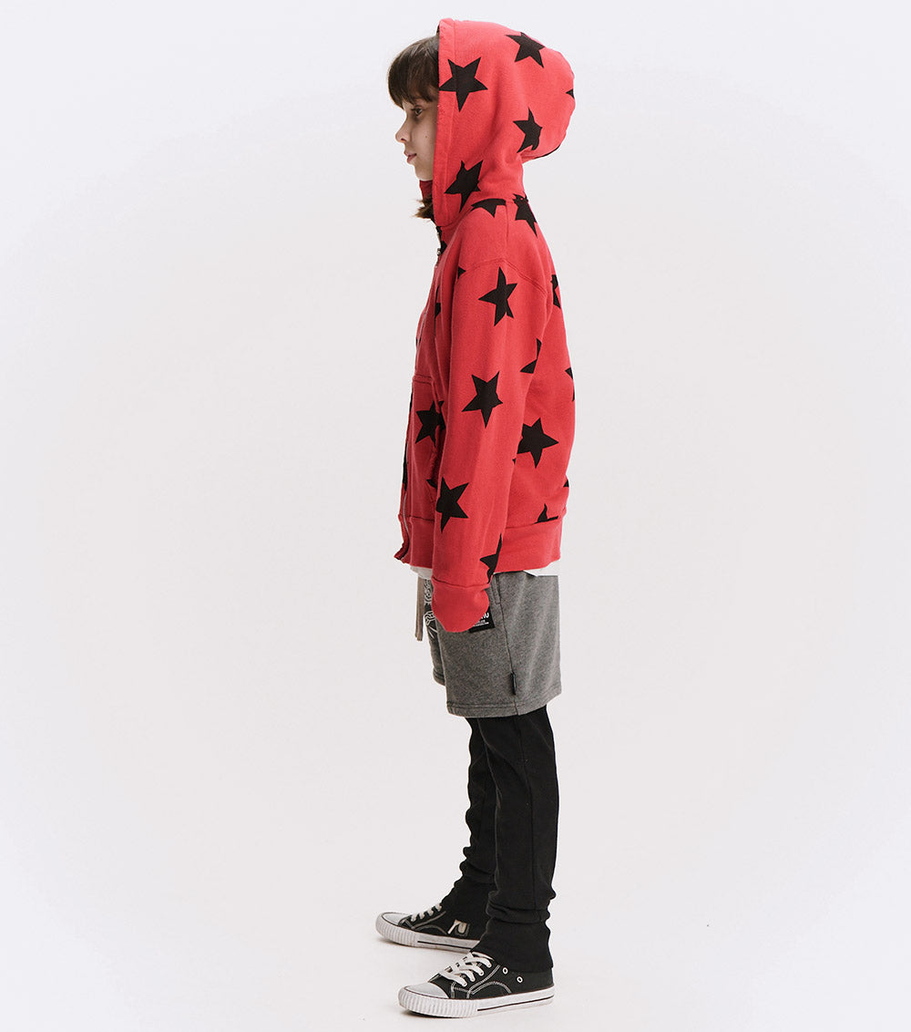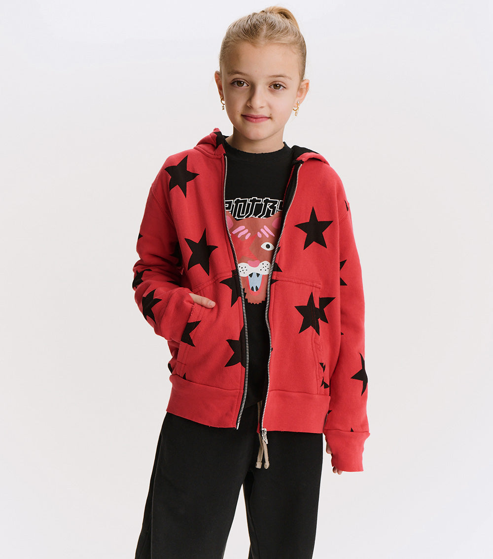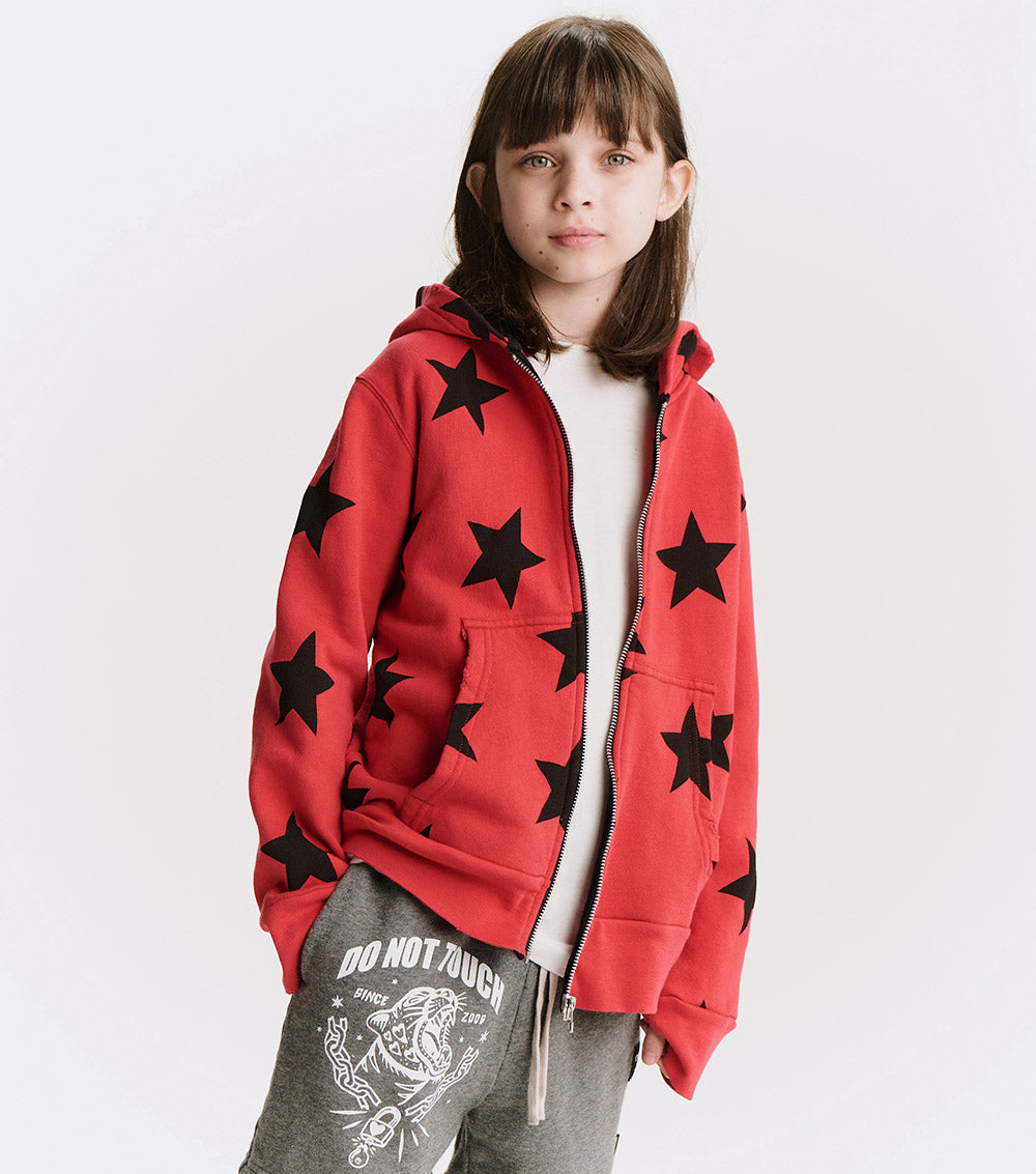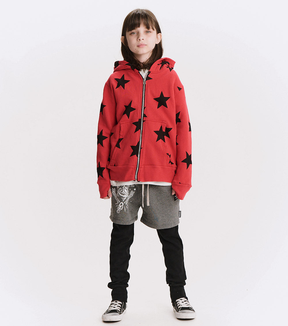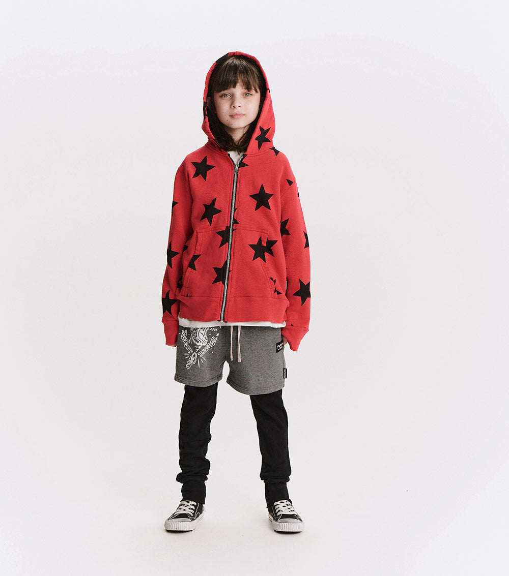 if you are what you say you are, a superstar – then show it. this cool grey hoodie is a nununu classic with an all-over star print, roomy kangaroo pockets, and thumb holes that make this piece cozy, comfortable, and cool. wear your stardom on your sleeve.