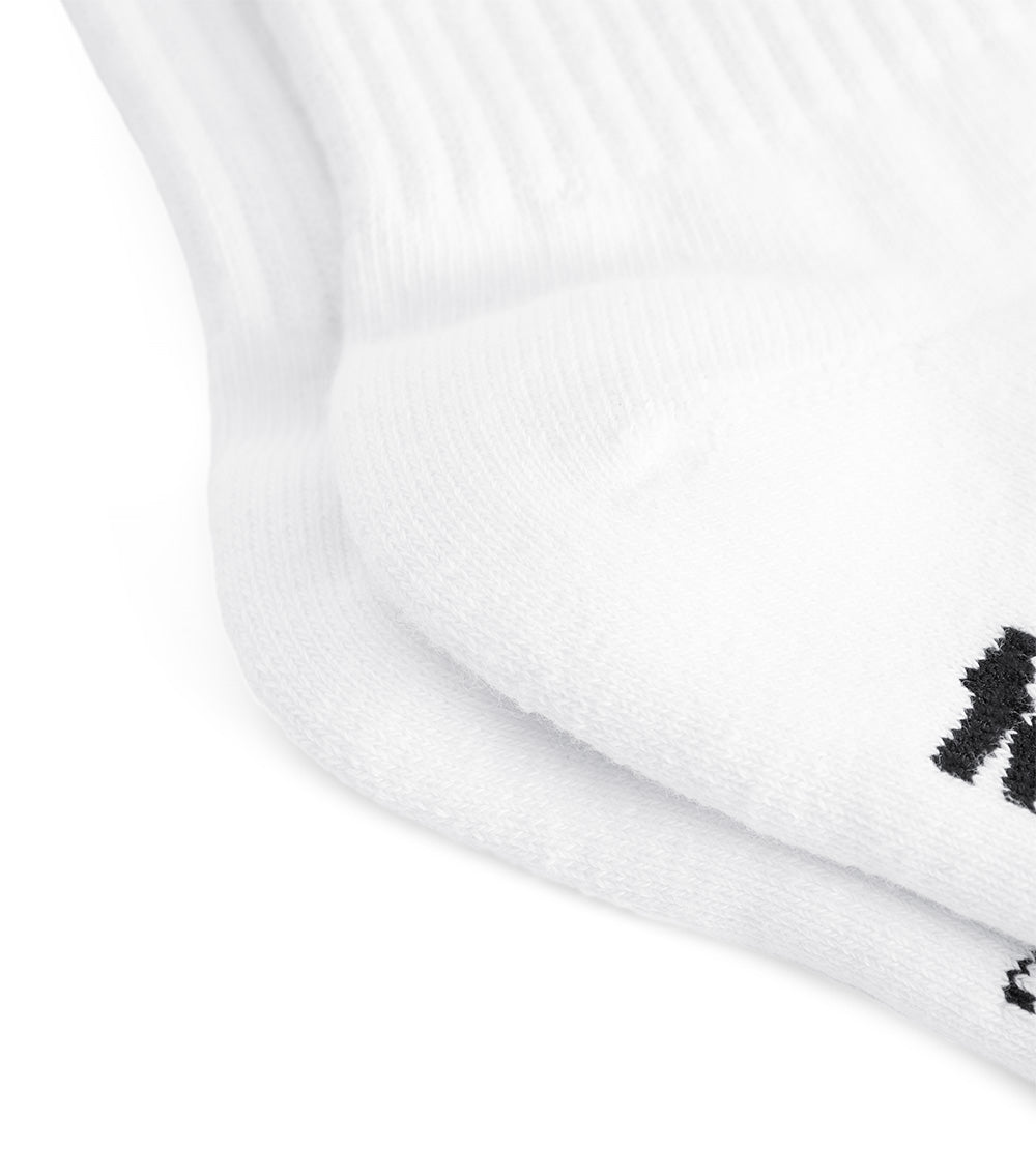 tube socks never served looks like this before. these are a classic white with black racing stripes and a patch featuring our smirking tennis ball mascot. it says nununu on the arch to complete your fierce look from head to toe.