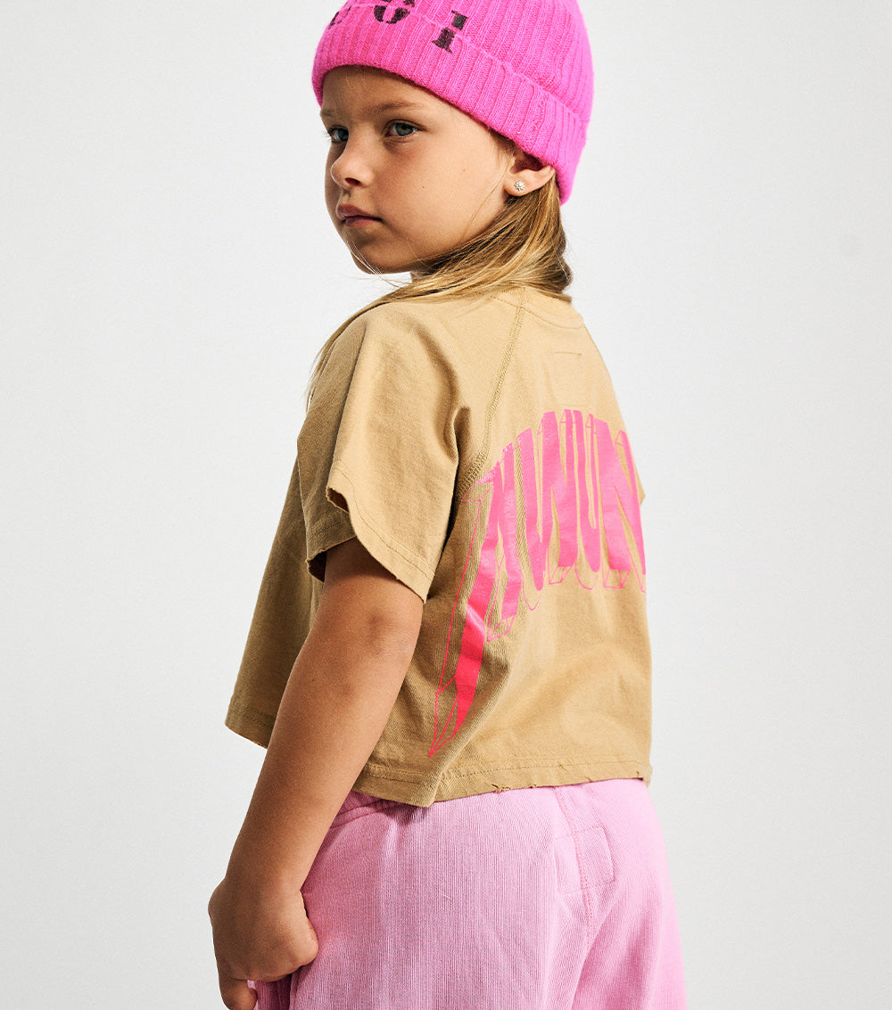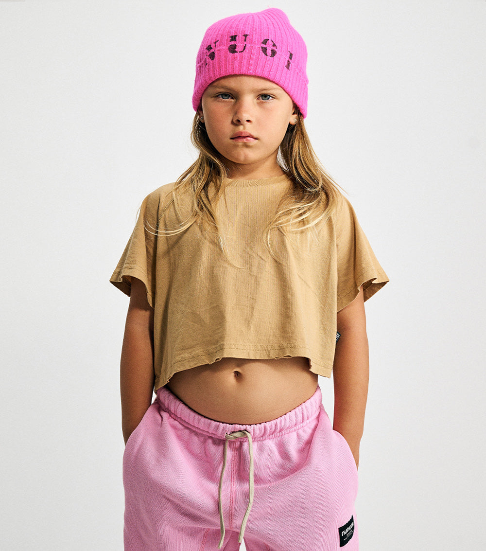 quiet in the front, loud in the back kind of like us… this oversized cropped tee flips the script with a bold nununu in rawk mode splashed across the back in hot pink. minimalist front, maximalist attitude. made in our signature soft cotton for that easy, slouchy fit kids live in.