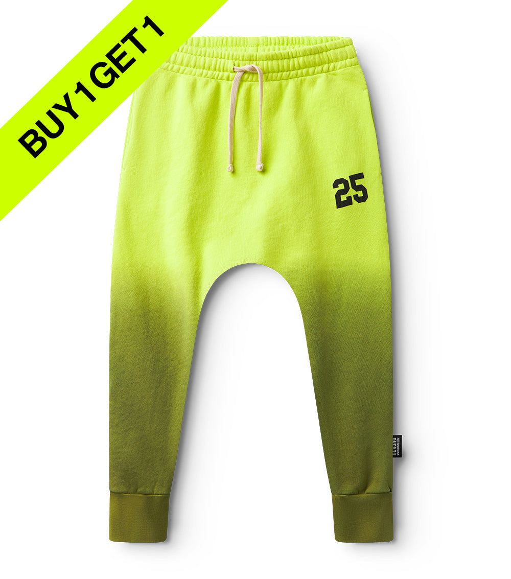 there’s only one thing in your kid’s life that should seem a little toxic. these pants. they’re a gender neutral cut made of seriously soft super lime french terry that looks dipped in some sort of mysterious potion, turning them a hot lime tone towards the ends. a stretchy waistband keeps them up for all sorts of experiments. the results? 100% chic.