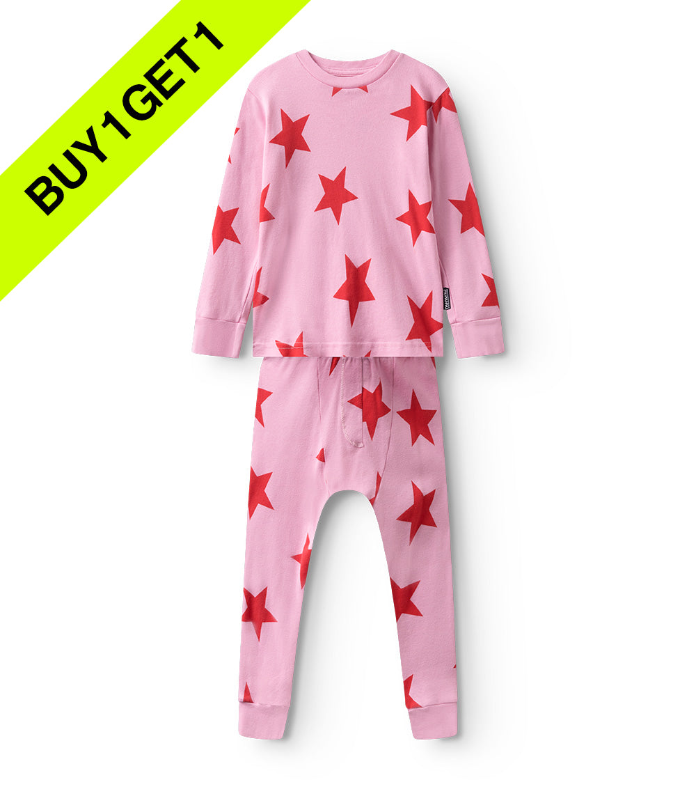 you know you can’t get enough of our signature star print and we can’t either. that’s why we’ve spangled it all over this super pink fine rib cotton lounge set for boys & girls. it’s got shell fabric cuffs and a soft waistband for maximum comfort. worn together or separately, this set has a long-sleeve t-shirt & bottoms & is soft as hell & totally swaggy. it’s the best way to keep some semblance of style dignity, even as the cold winter months present the opportunity for a level of indoor lounging that could be considered excessive.