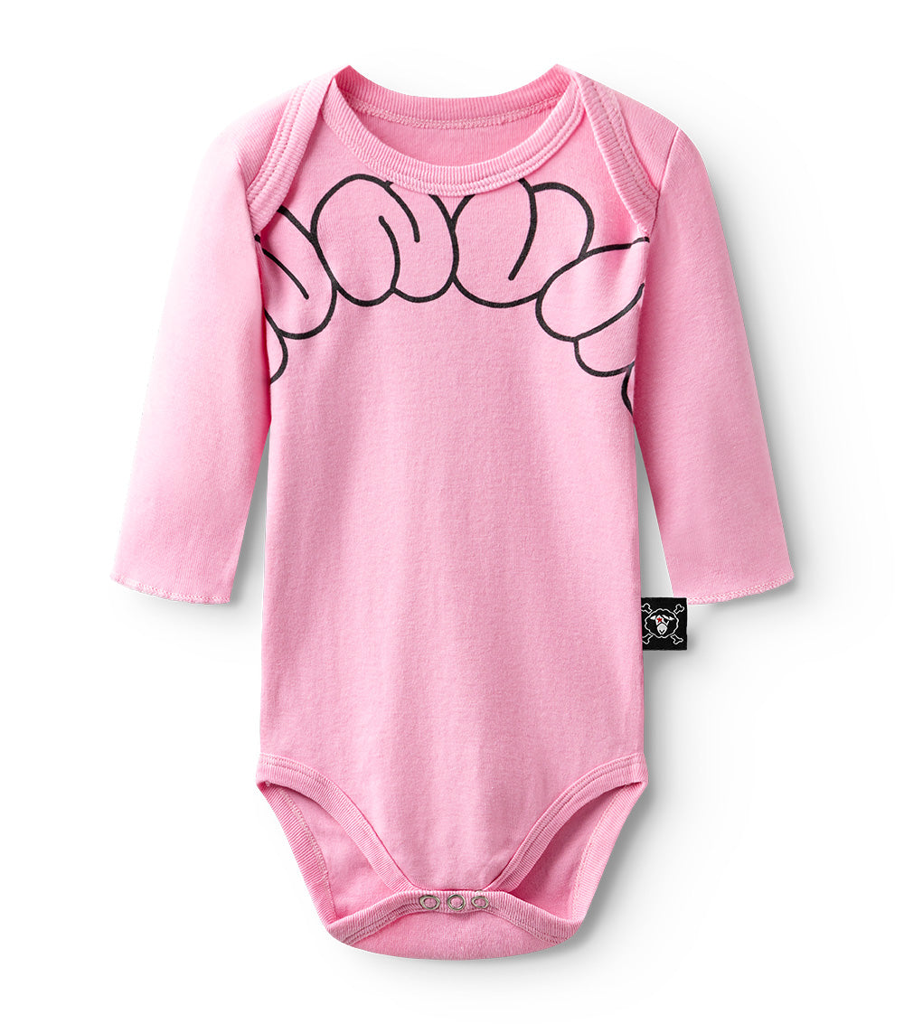 let your baby show off their bold & bubbly personality in a gender-neutral logo print onesie that commands the room. it’s made of ultra cozy super pink fine rib fabric with our balloon-ish logo print in between the warm & toasty long sleeves. it’s a classic shape that goes on with zero friction. snaps at the crotch make diaper changes a no-fuss situation, and shoulder flaps let you pull it down from the top — whatever’s easiest in the moment.