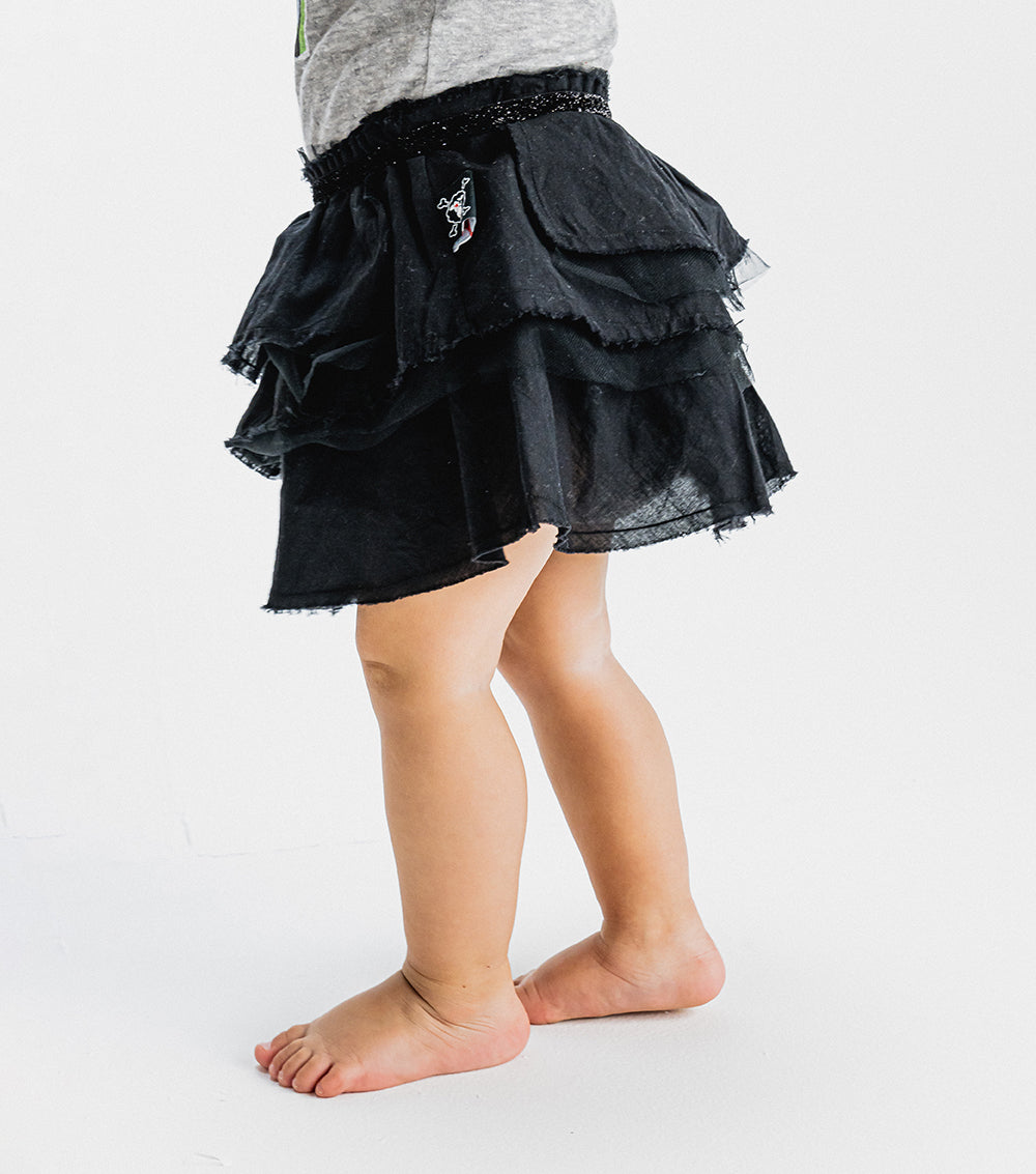 raw edge effect | layered tulle & cotton skirt | in-between leg snaps