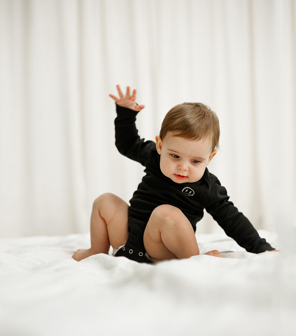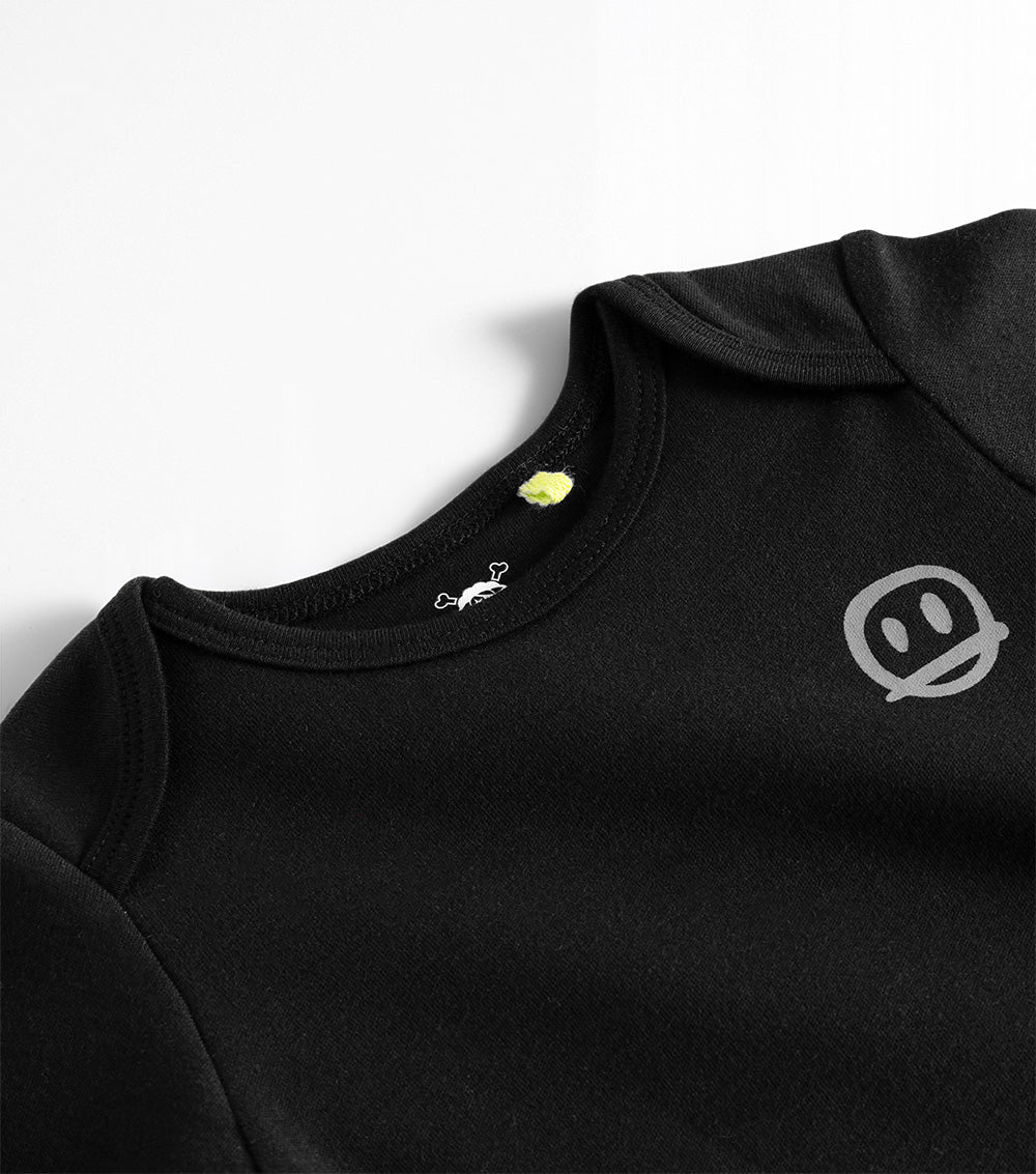 wrap the newest addition in cloud-like comfort with our extra soft solid black onesie. this perfect nununu starter piece is crafted from super soft fabric, perfect for delicate baby skin – no itchy tags or seams on this one plus it’s got perfect little crotch snaps so changing is as simple as can be which is a huge plus since we’re sure your tiny human is always ready to kick & scream!