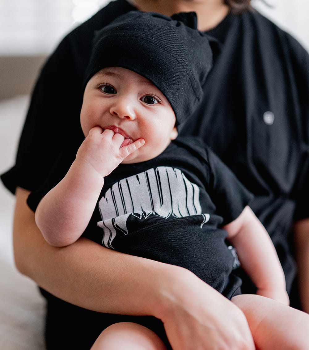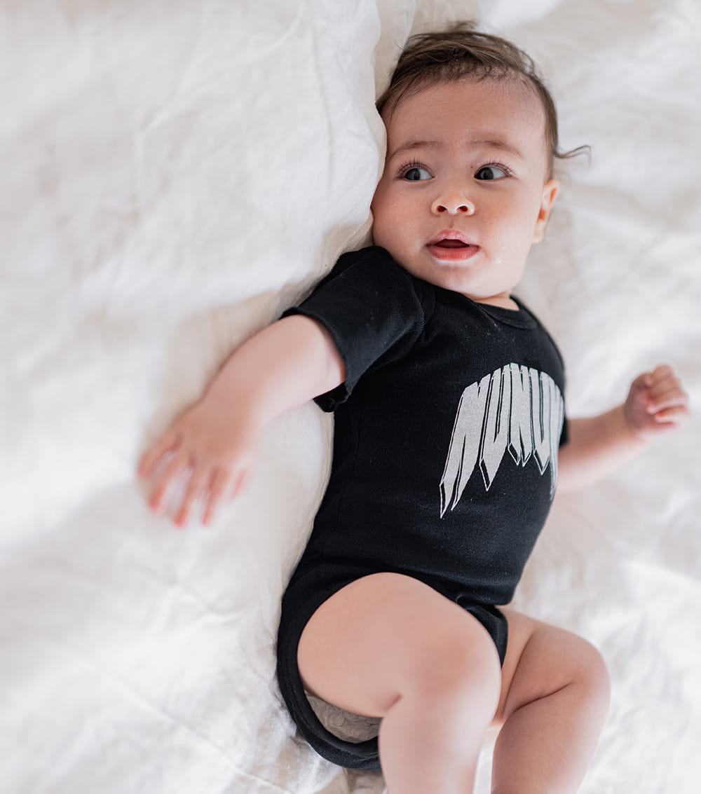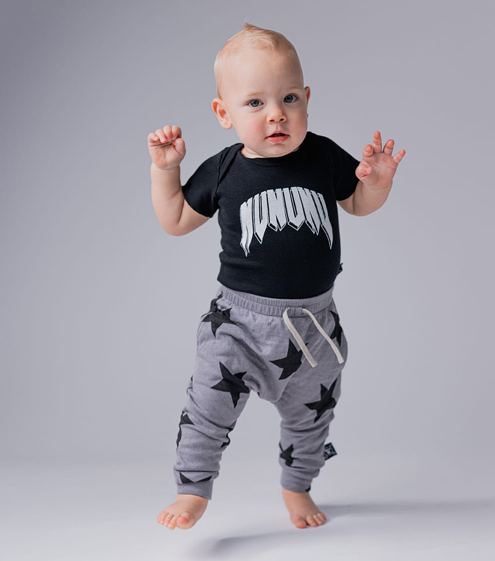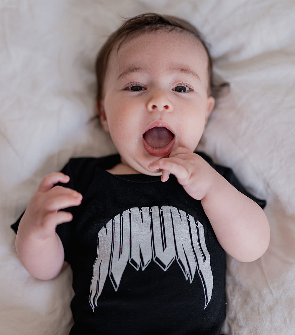 what’s sucking on thumbs by day & slamming on air guitars in their dreams by night? your baby. especially when they’re wearing this epic black unisex onesie. it’s made of comfy & free fine rib with our totally rock-n-roll nununu logo in white 3d print on the front. plus it’s got perfect little crotch snaps so changing is as simple as can be. which is a huge plus since we’re sure your tiny human is always ready to kick & scream as little rockstars do.