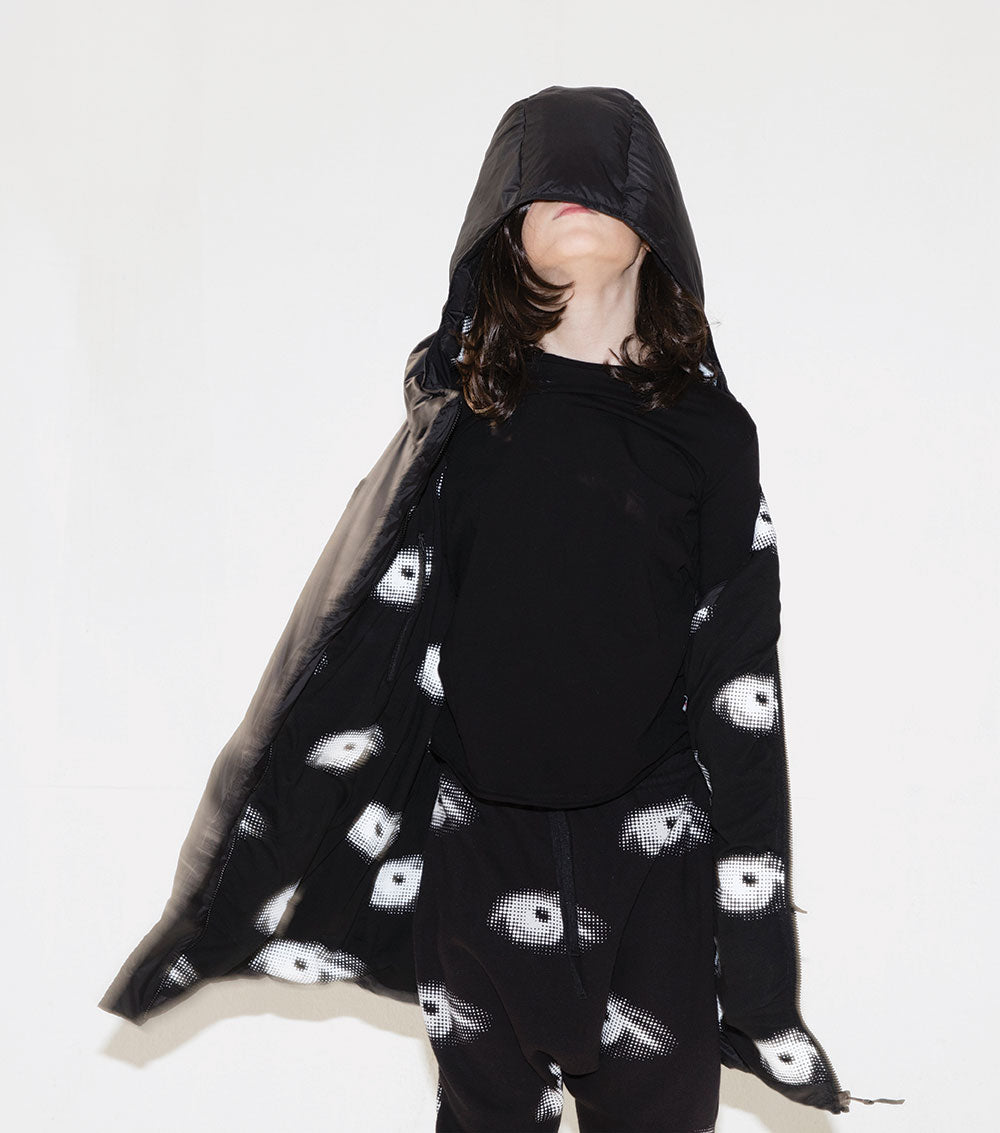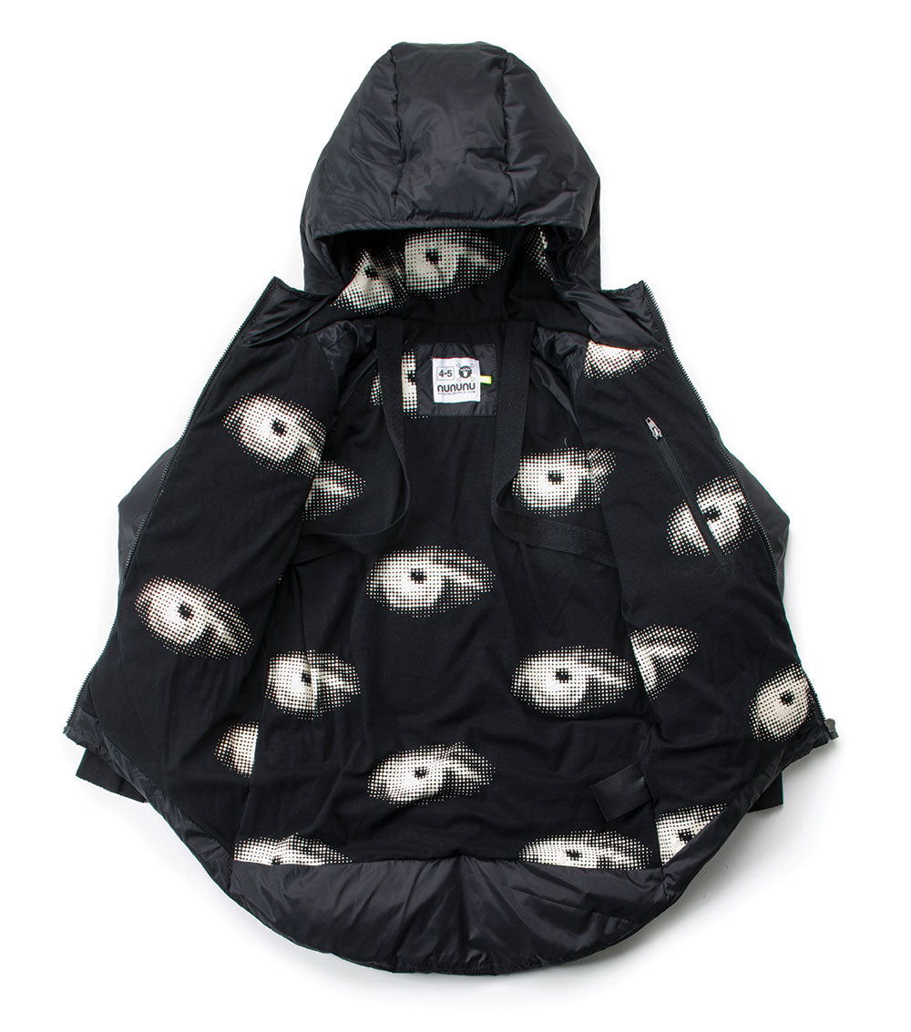a little more length is awesome for cooler days & cooler looks. plus, the lining on this long down vest is printed in dot-pixel eyes, for inner vision. hood goes up for sulking purposes, while arms stay free. off center closure & zip pockets add some attitude to the front. inside shoulder straps let kids carry the vest like a backpack so they can peel it off & not lose it immediately.