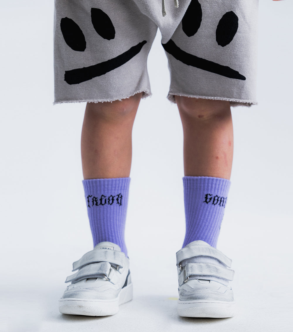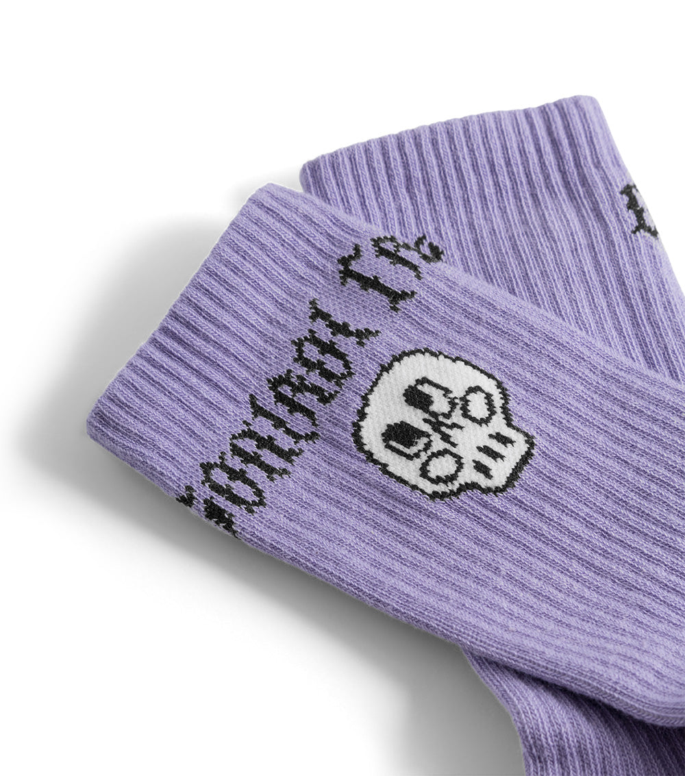 who knew ankles could look so chic? we did. and it's all because of these cool little gender-neutral socks. they’re super comfy & stretchy for total movement and stand out in a sleek mauve mist color. they feature our kooky skull silhouette created in collab with artist shai id alony. plus, they screech control freak in our witchy font, so everyone staring knows the kind of boss kid they’re dealing with.