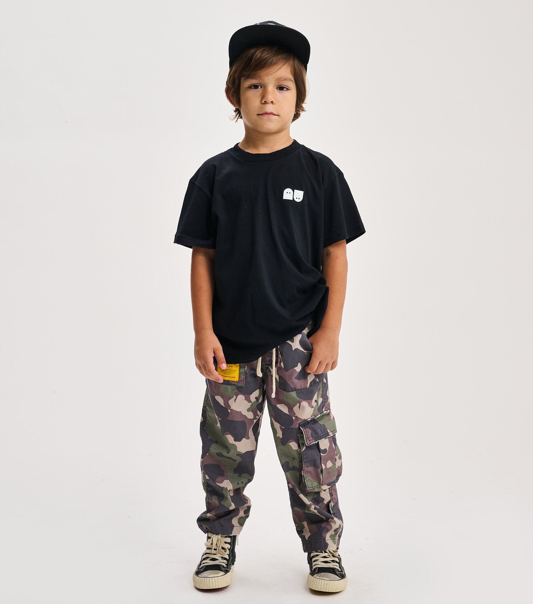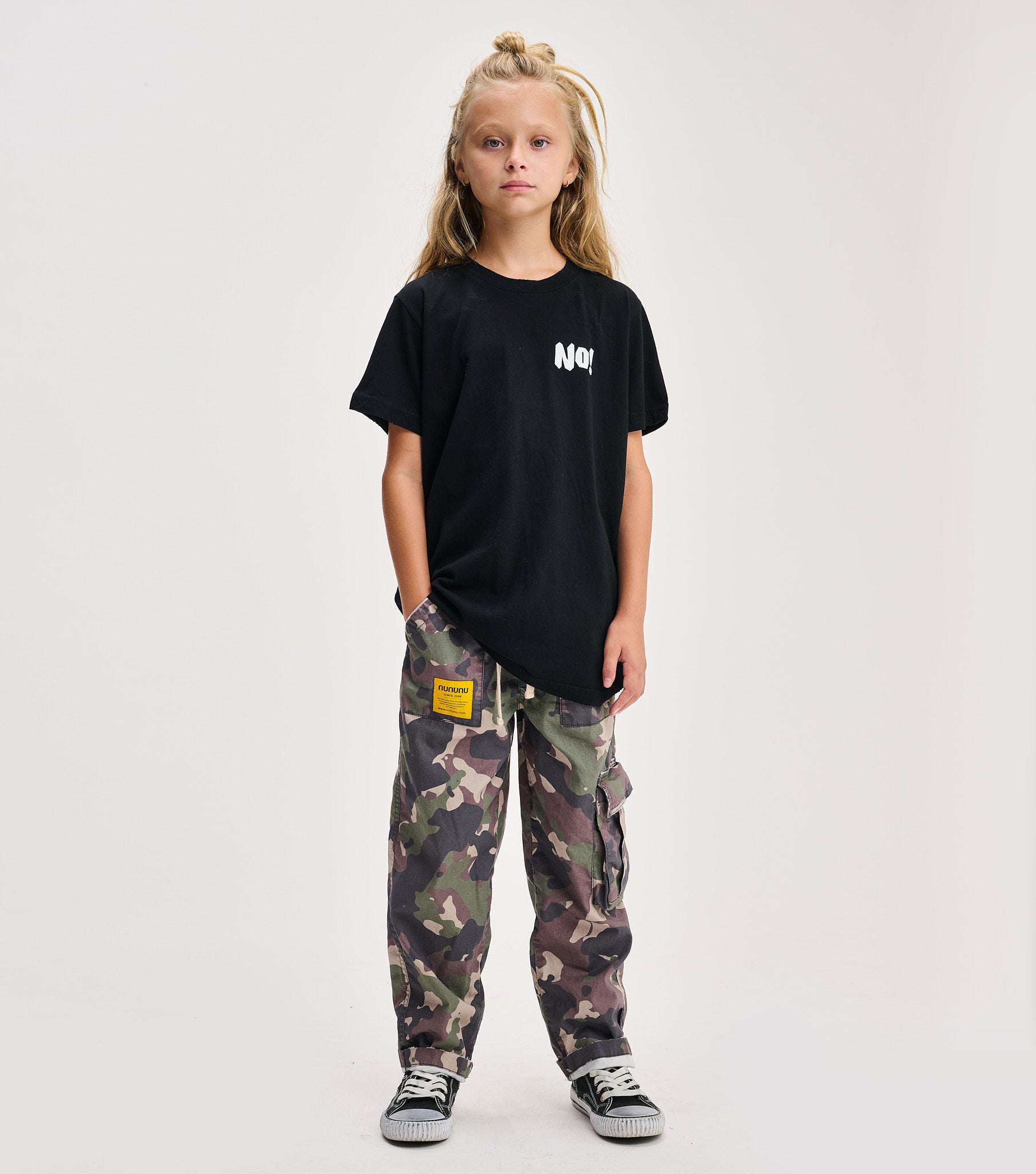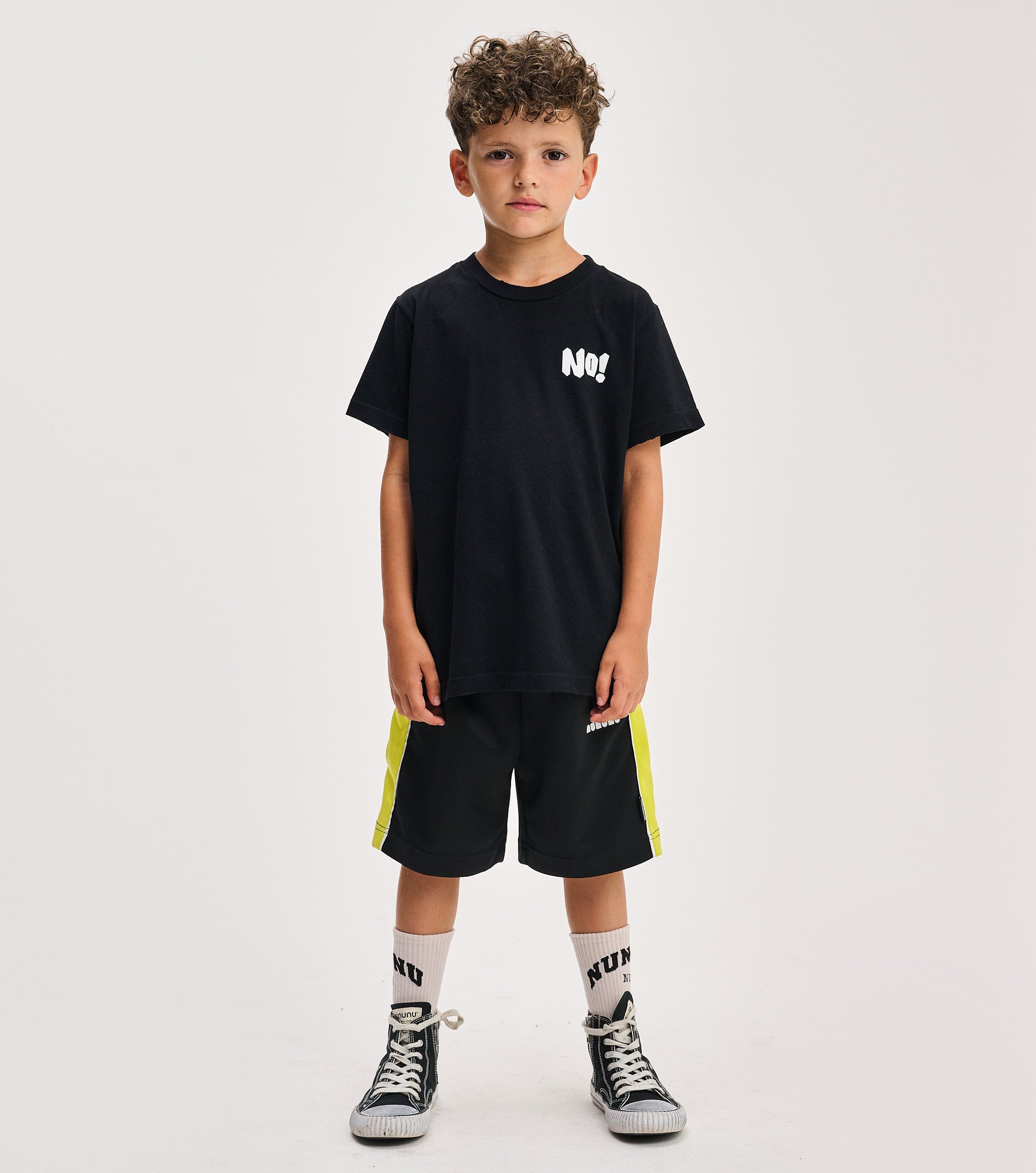 this fit is way too cool not to own. it’s a gender neutral cut made of soft black single cotton with custom deconstruction to give it that lived-in look. your kid’s favorite word is exclaimed in a video game style font with lots of sharp corners & edges. because they’re rock solid at everything they do and fearless in everything they say. especially when it’s a no after being asked to let that screen go! .