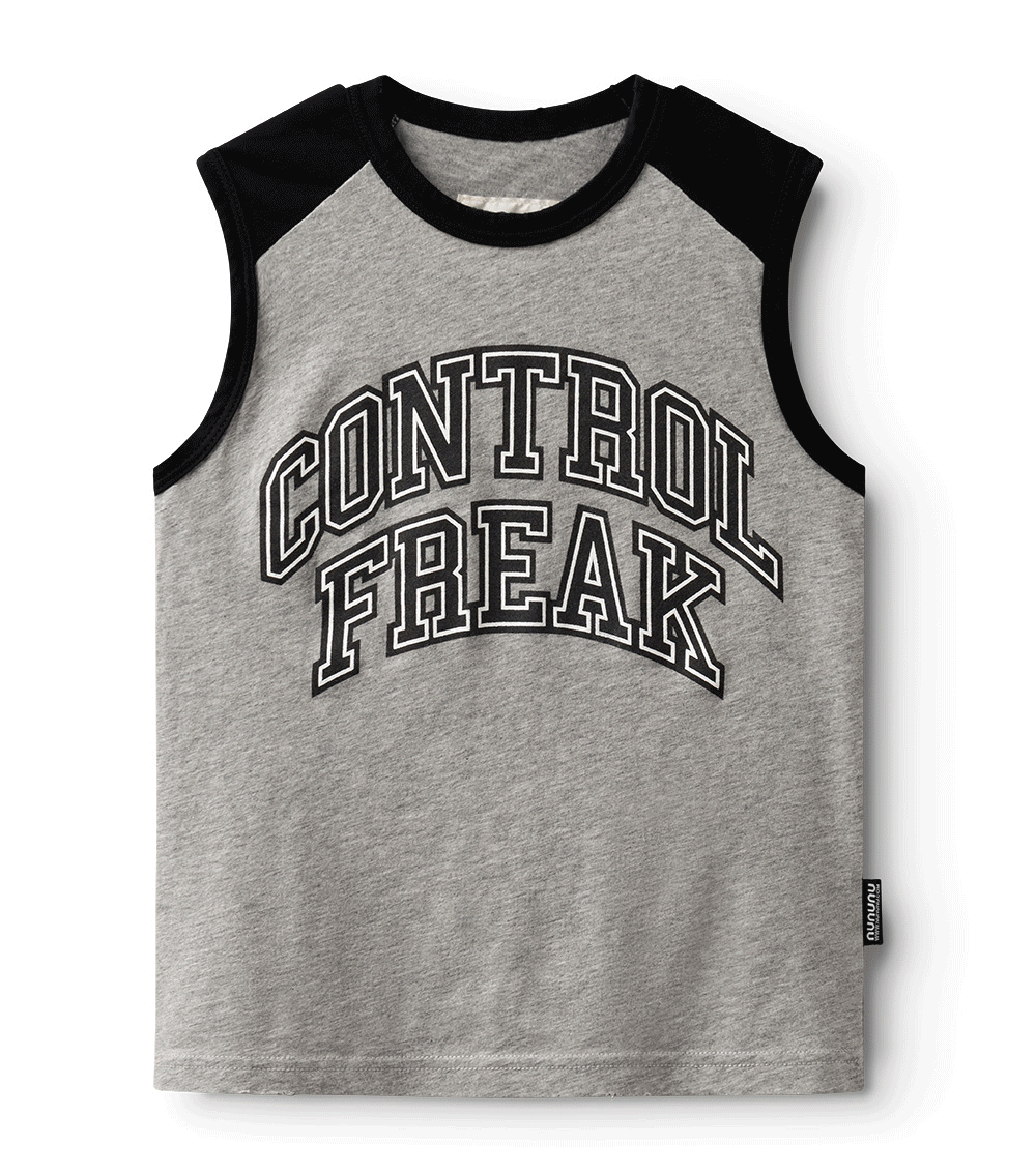 ready to play? good. but it better be by your kid’s rules. this tee makes that pretty clear. it’s a gender neutral cut made of heather grey single cotton with a baseball raglan-style look with bold black shoulders & sleeve hems. but to make sure the attention is fully captured, it says control freak nice & big in our collegiate style font. because the world needs to know who’s in charge without this kid having to say it.